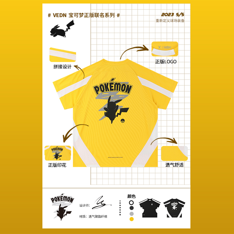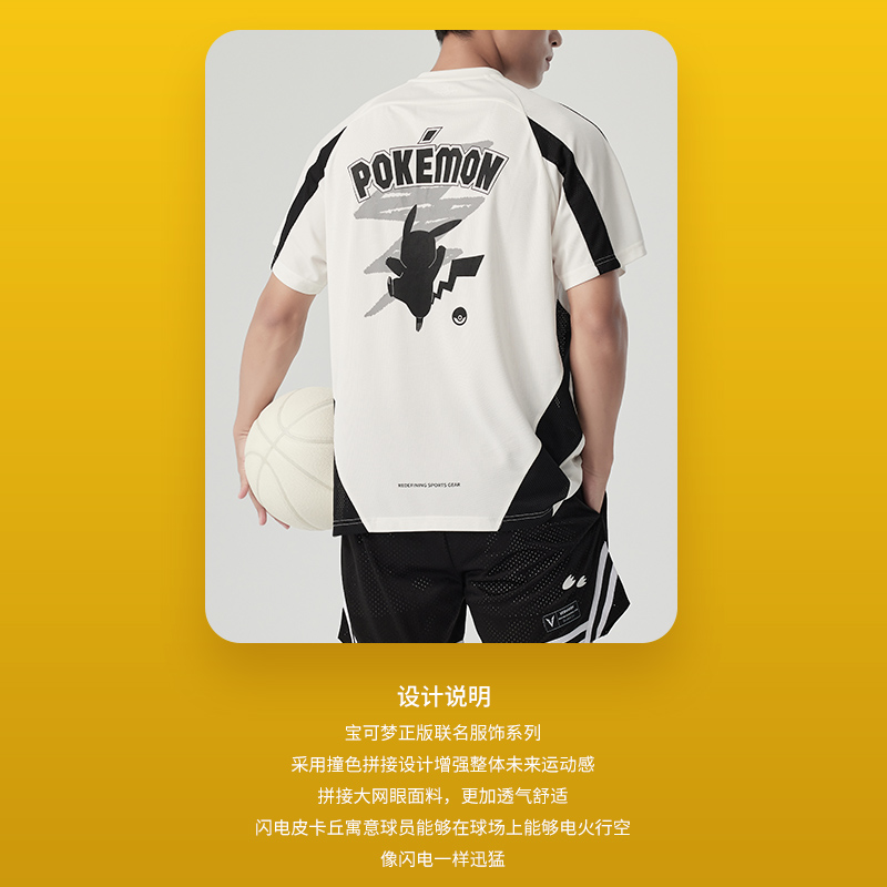 维动宝可梦联名短袖投篮服T恤男美式篮球训练服运动跑步上衣透气V