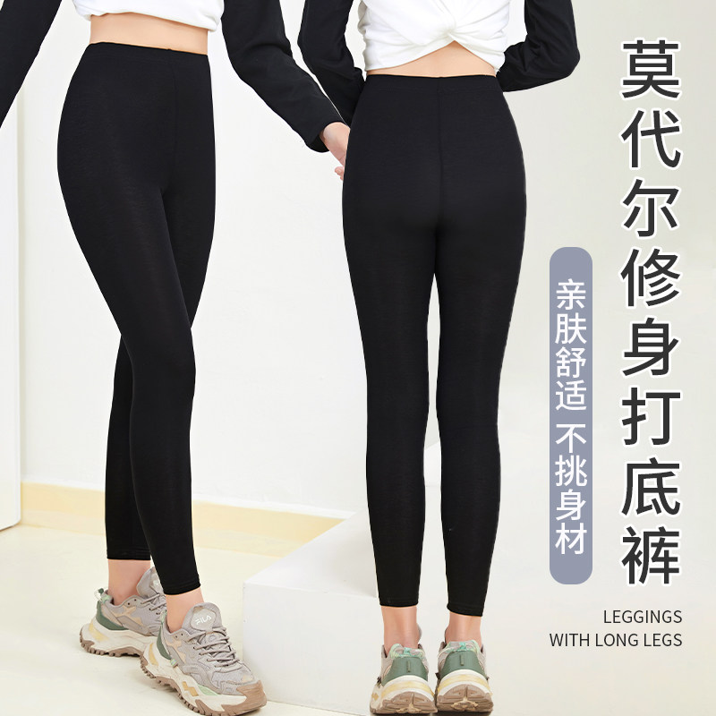 莫代尔打底裤女夏季薄款外穿高腰纯棉九分黑色弹力小脚裤大码可穿