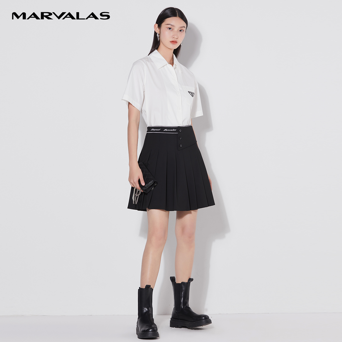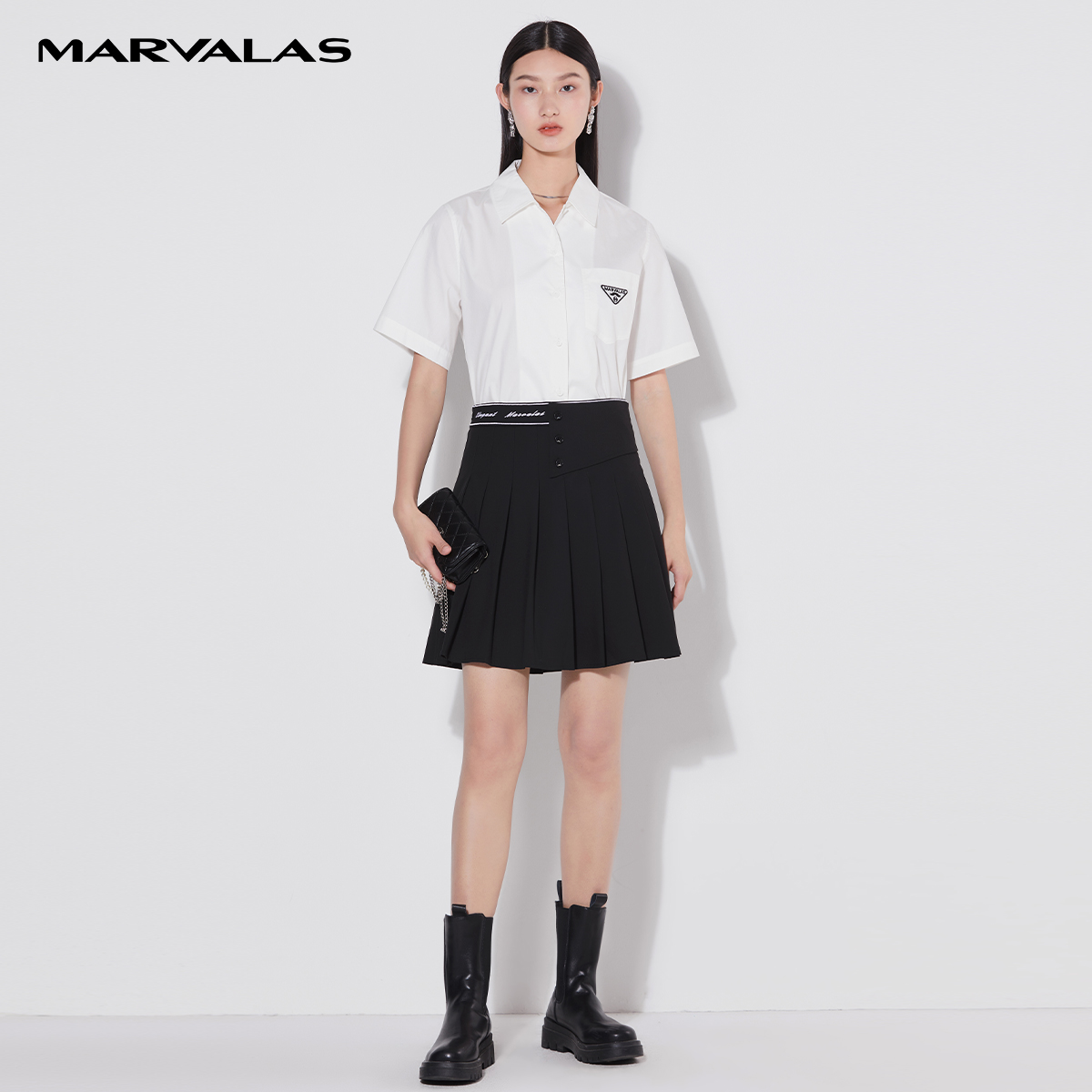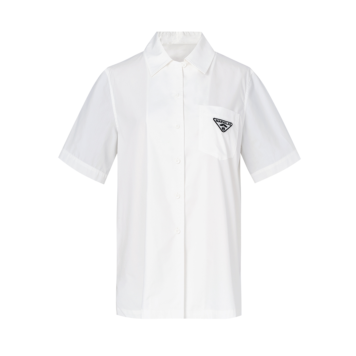 曼德诗白色衬衫女2025夏学院风设计感小众印花短袖女通勤感简约