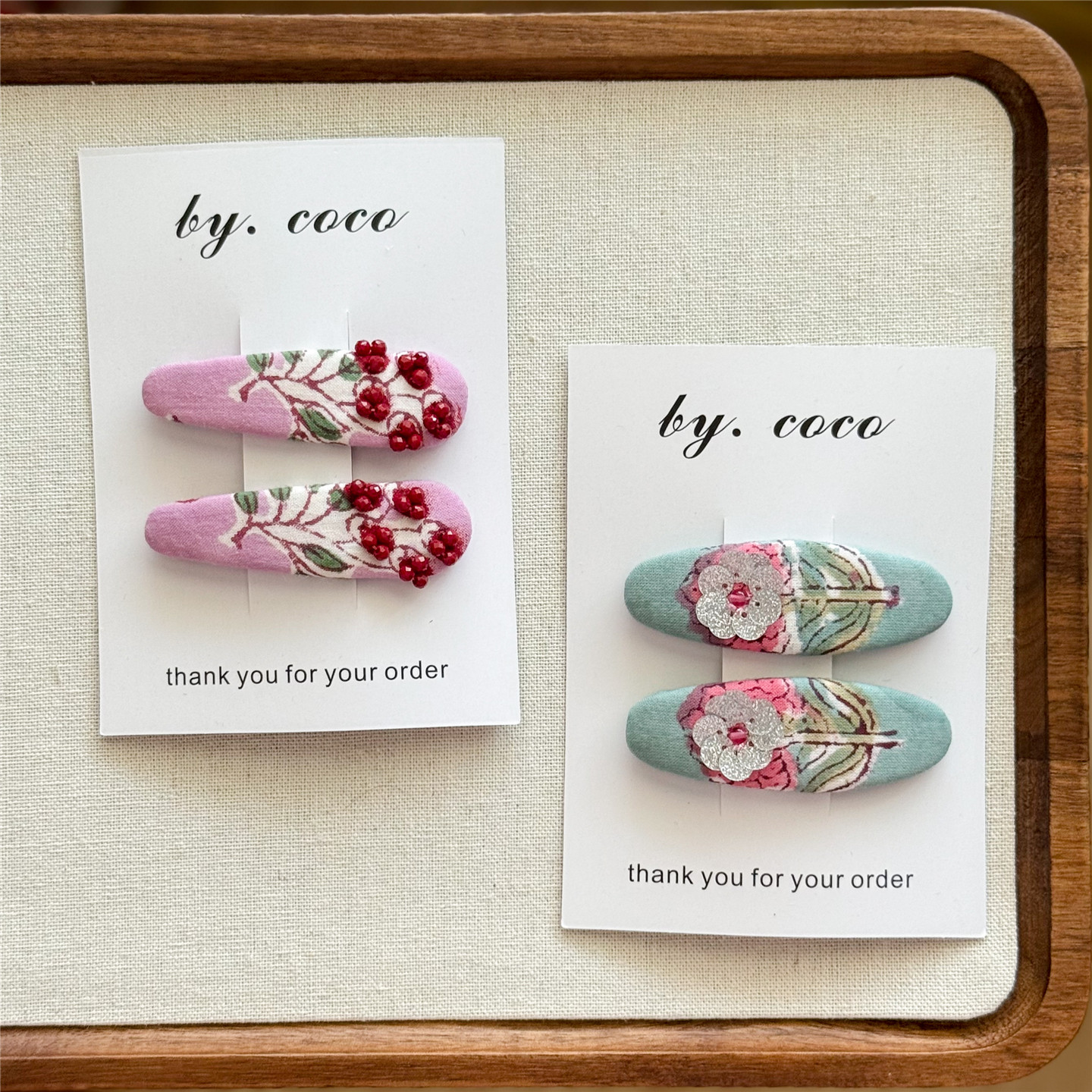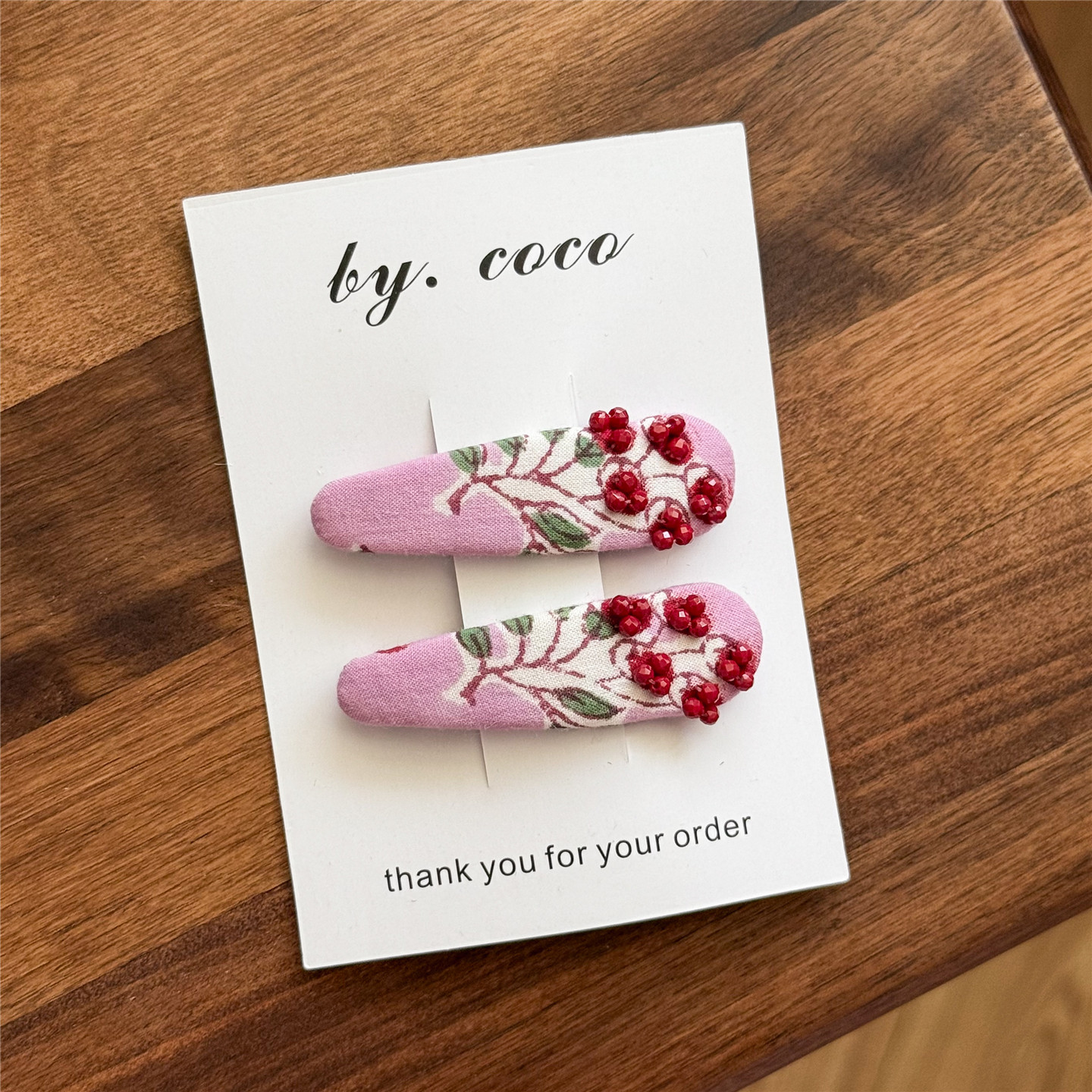 小众儿童手缝串珠红色樱桃边夹
