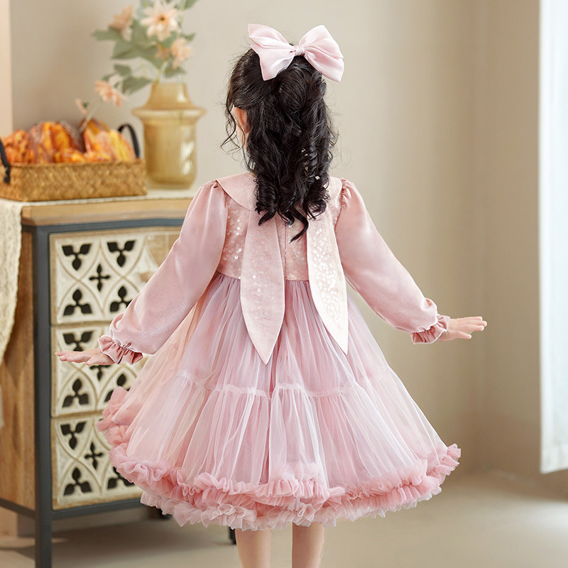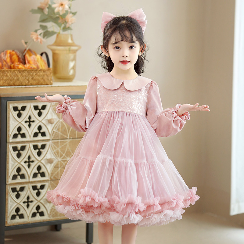 女童连衣裙2025新款秋冬花童礼服裙子加绒冬季女孩儿童公主裙秋季