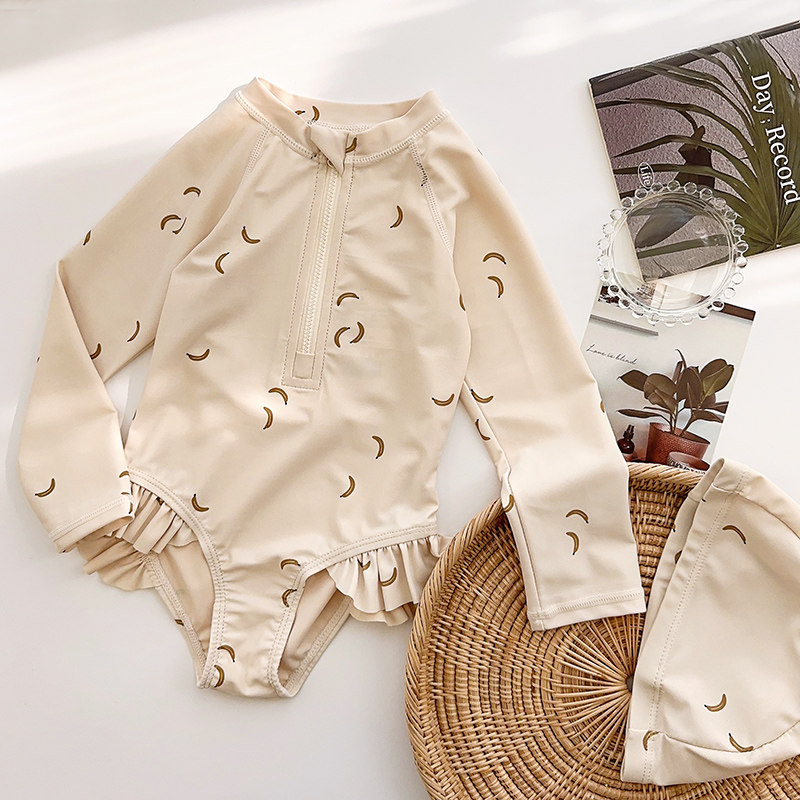 ins儿童泳衣女童宝宝连体长袖防晒速干游泳衣洋气小女孩可爱泳装