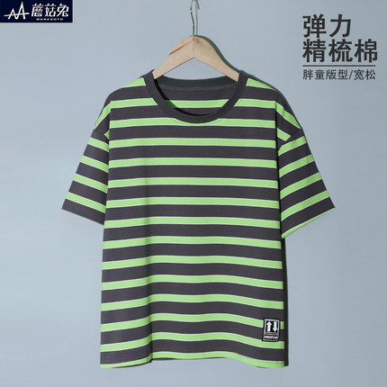胖男童短袖t恤条纹中大童儿童半袖大码童装胖男孩夏季2024年新款