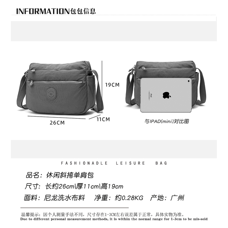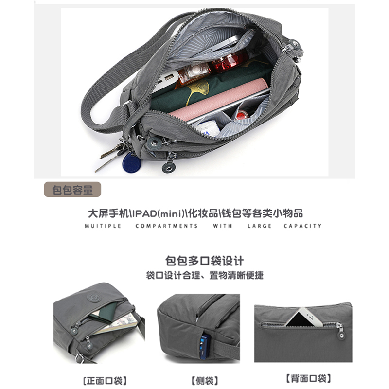 斜挎包女尼龙布防泼水新款百搭轻便多口袋容量大休闲简约单肩女包