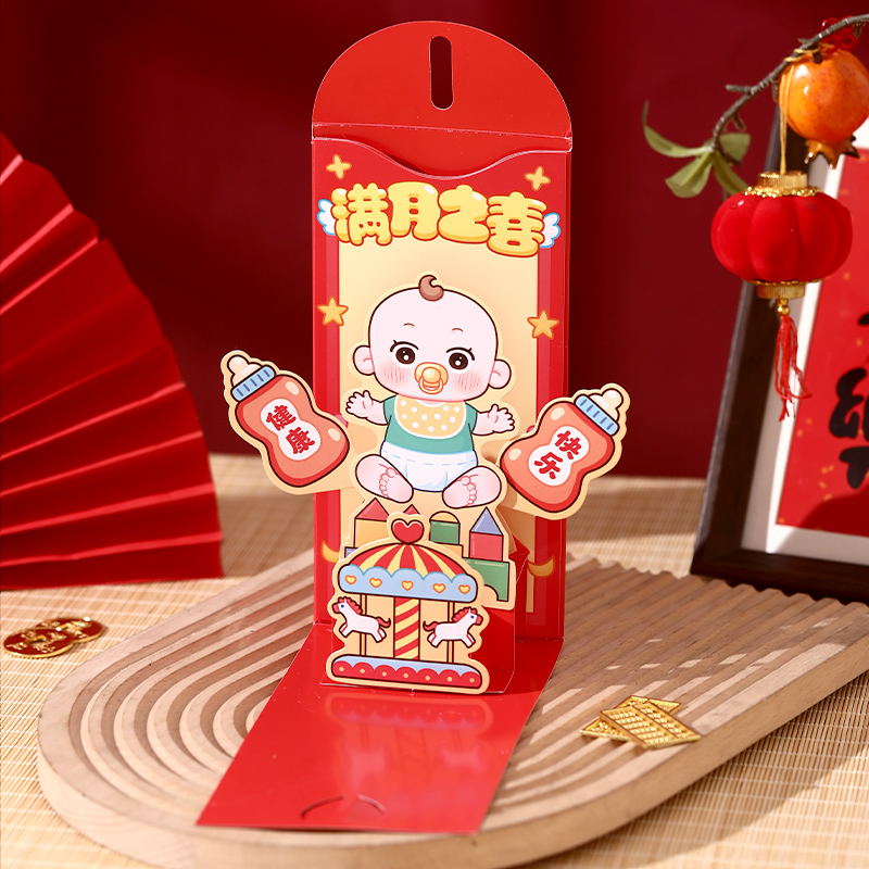 立体生日快乐红包2025新款创意宝宝满月之喜可动趣味成人礼利是封