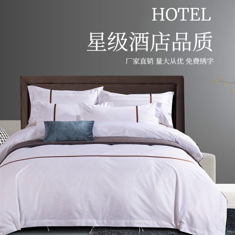宾馆床上用品全棉加厚简约三四件套纯色被套床单酒店床品布草酒店