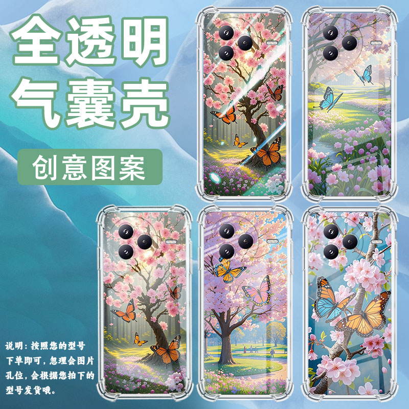 适用小米civi5Pro手机壳防摔小米POCOC71潮流气囊壳樱花蝴蝶男女款小米pocoF7高级感简约硅胶时尚保护套