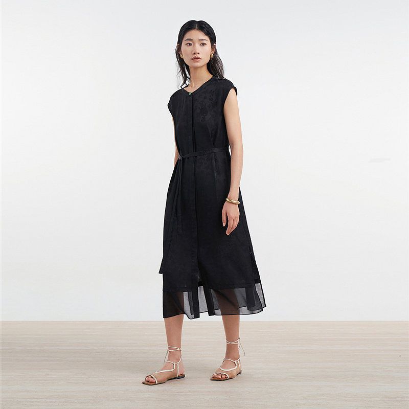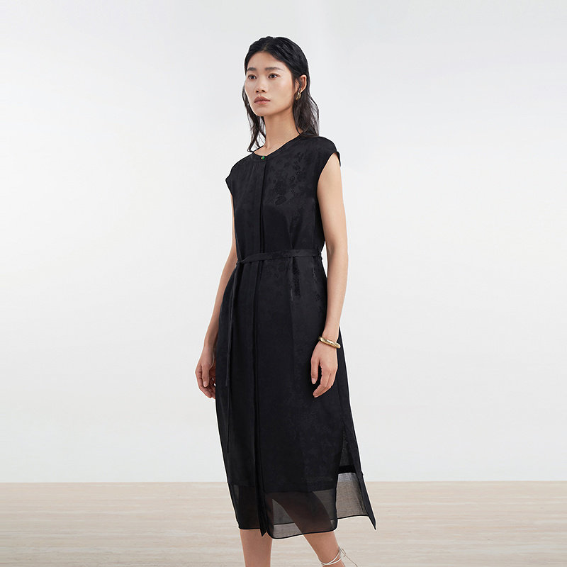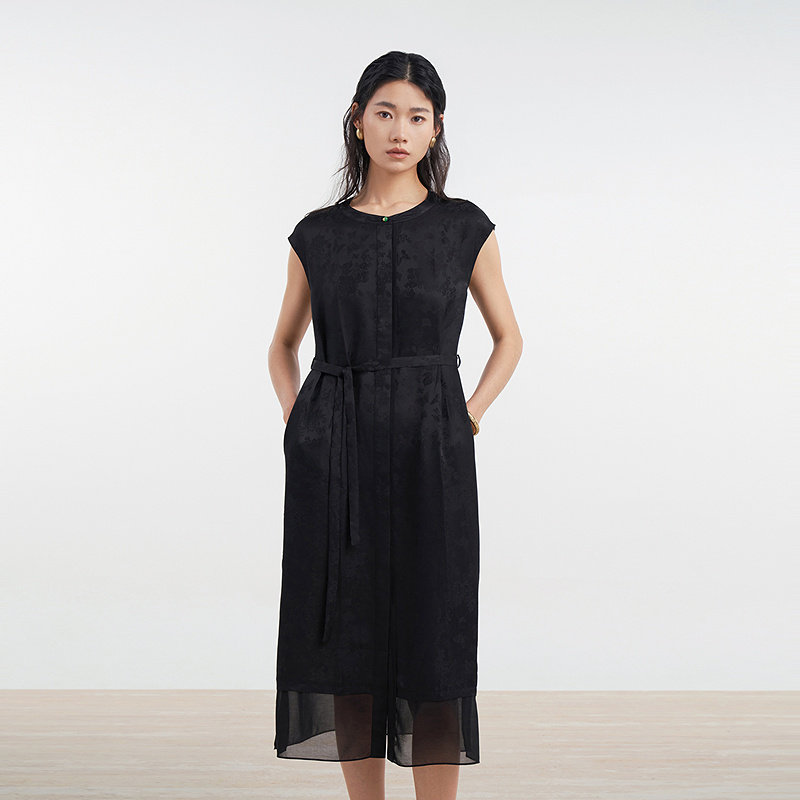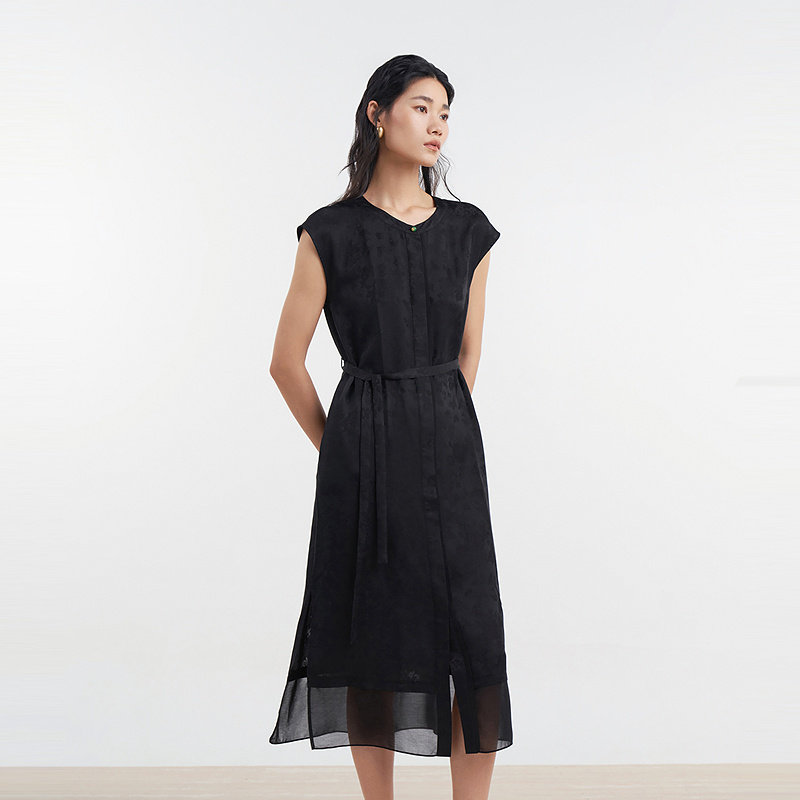 [专柜同款]Yifini/易菲真丝花罗优雅气质盖袖连衣裙女D05Y1620