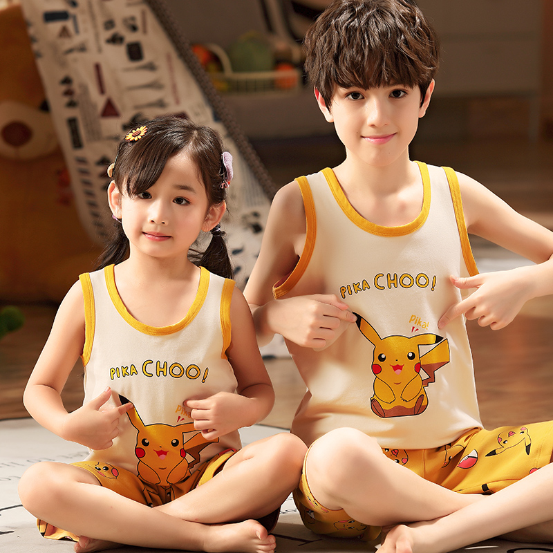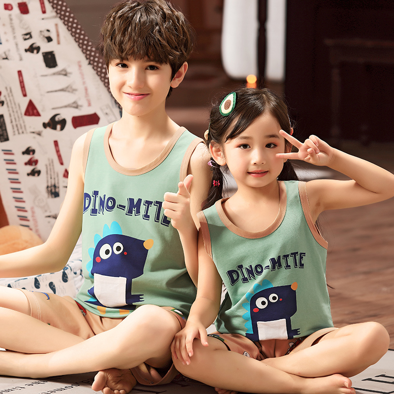 儿童睡衣夏季薄款短袖纯棉男孩中大童夏天女孩背心家居服兄妹套装