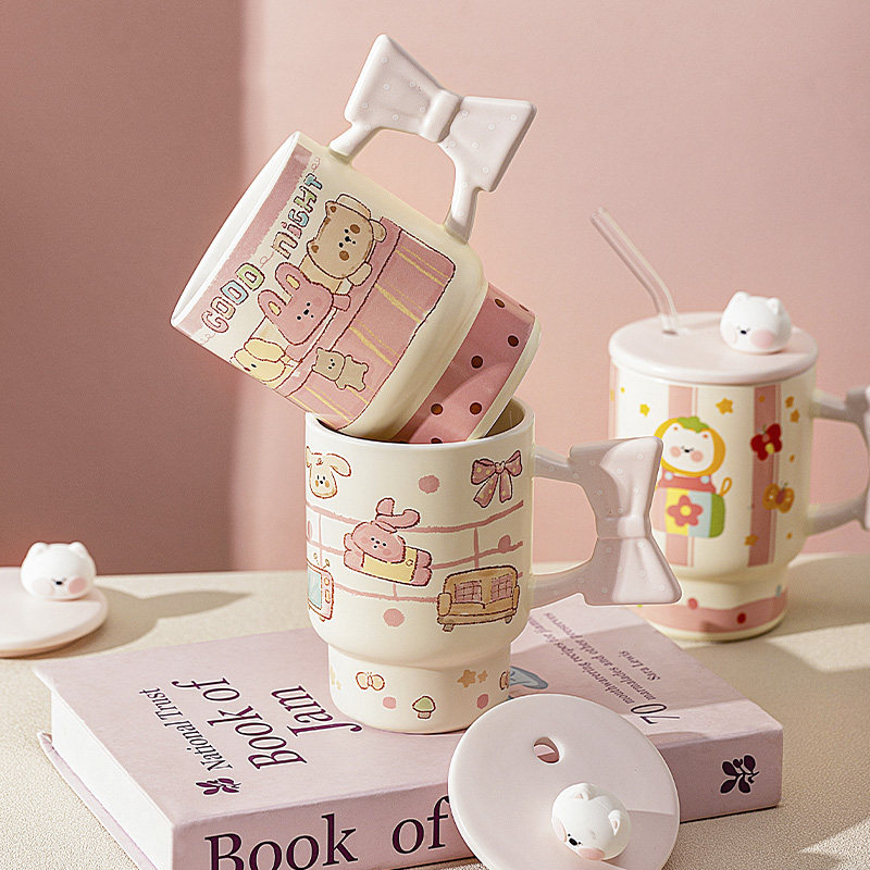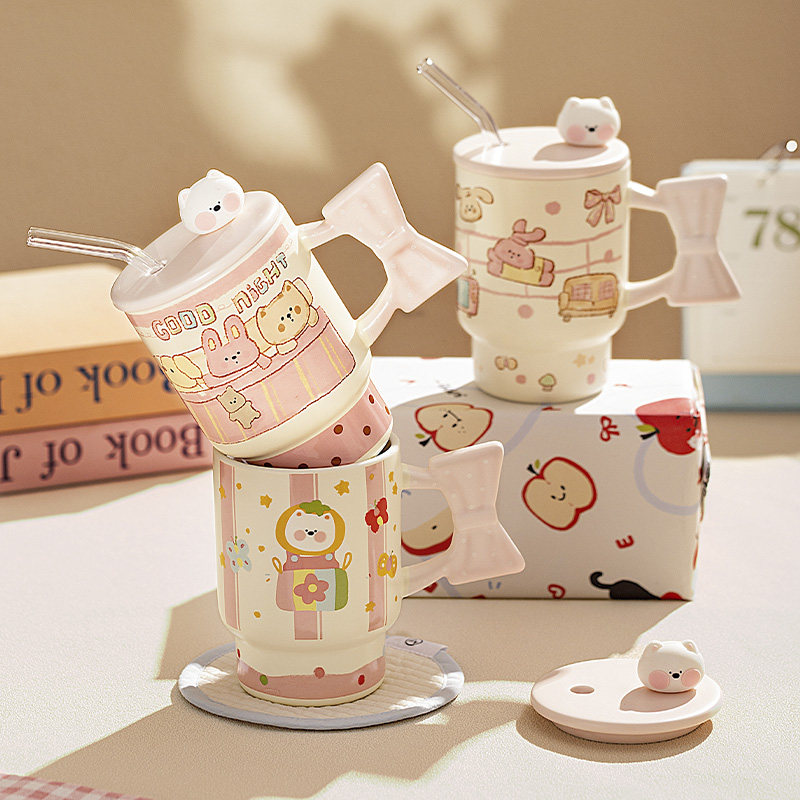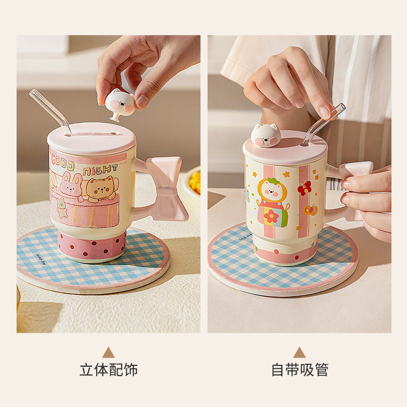 摩登主妇马克杯女生陶瓷杯吸管杯