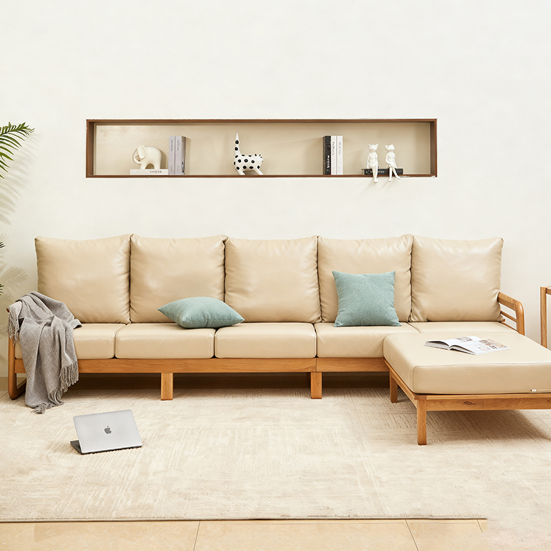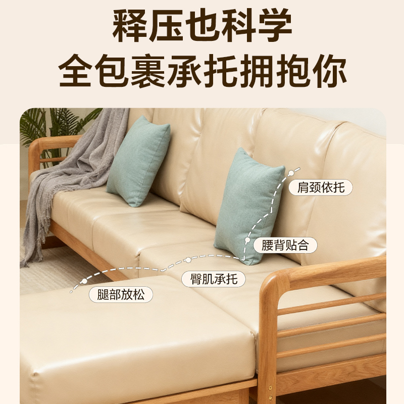 红橡木原木纳帕皮真皮沙发水性漆客厅小户型现代简约组合沙发