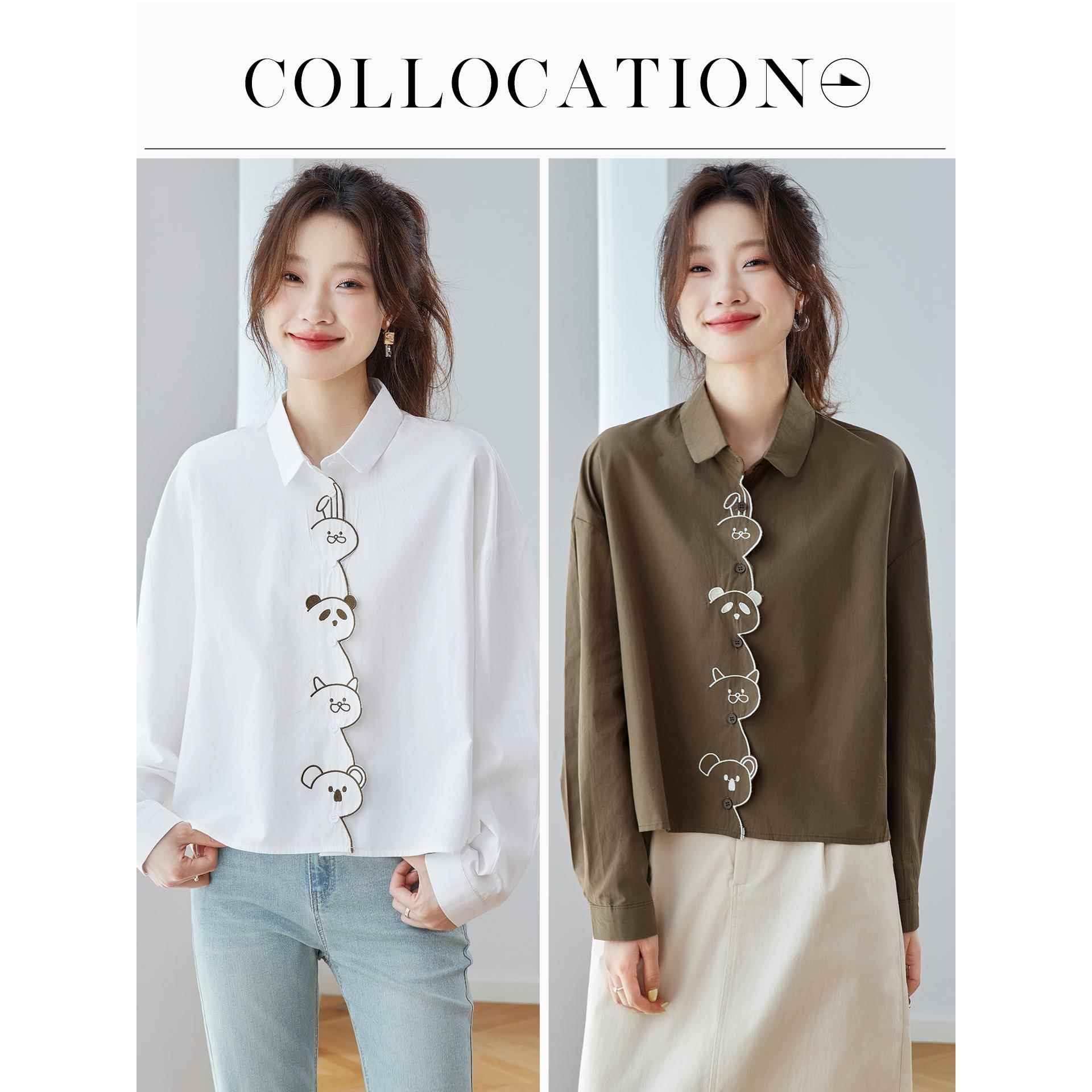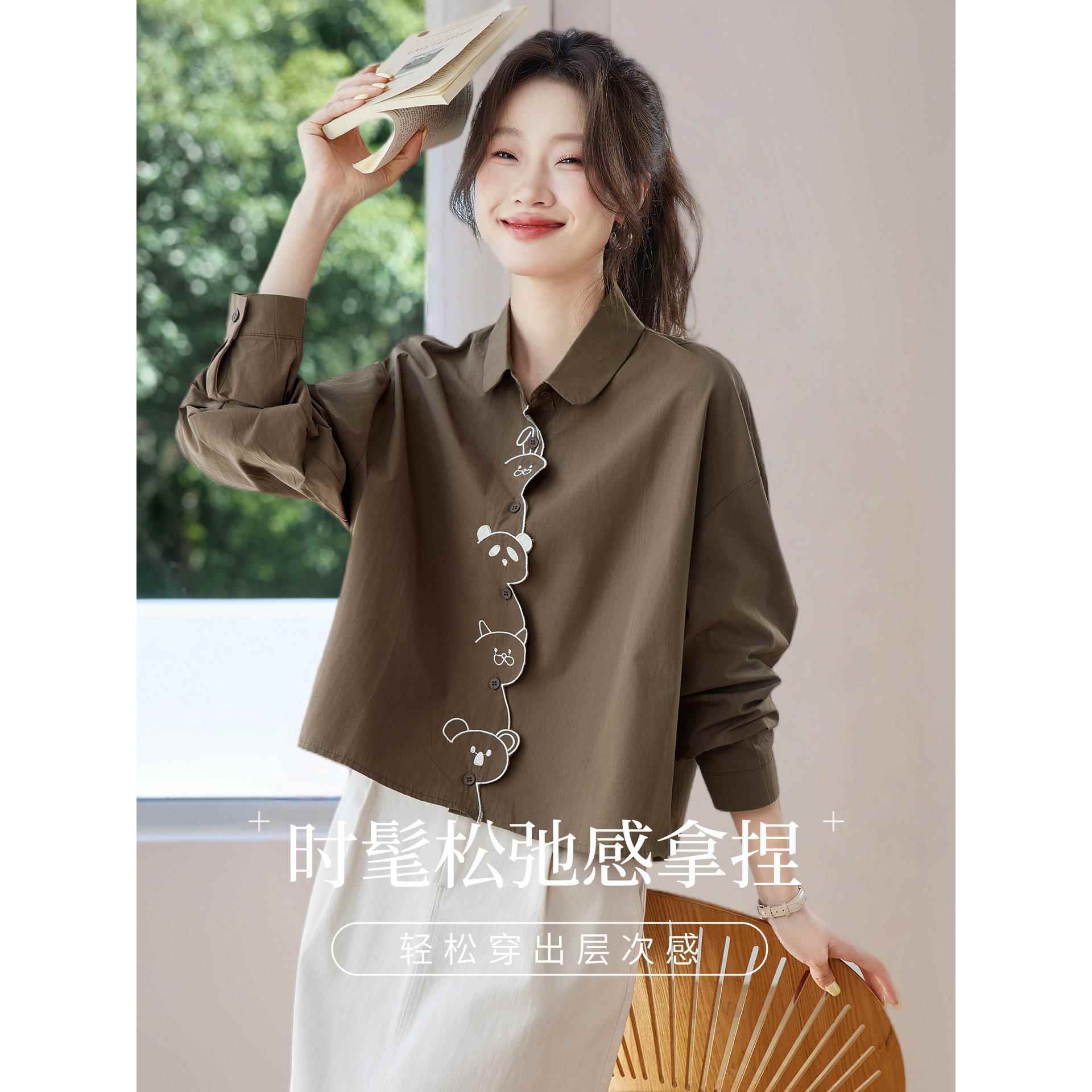 高级感气质宽松慵懒咖色纯棉衬衫上衣女2025新款春秋长袖衬衣小衫