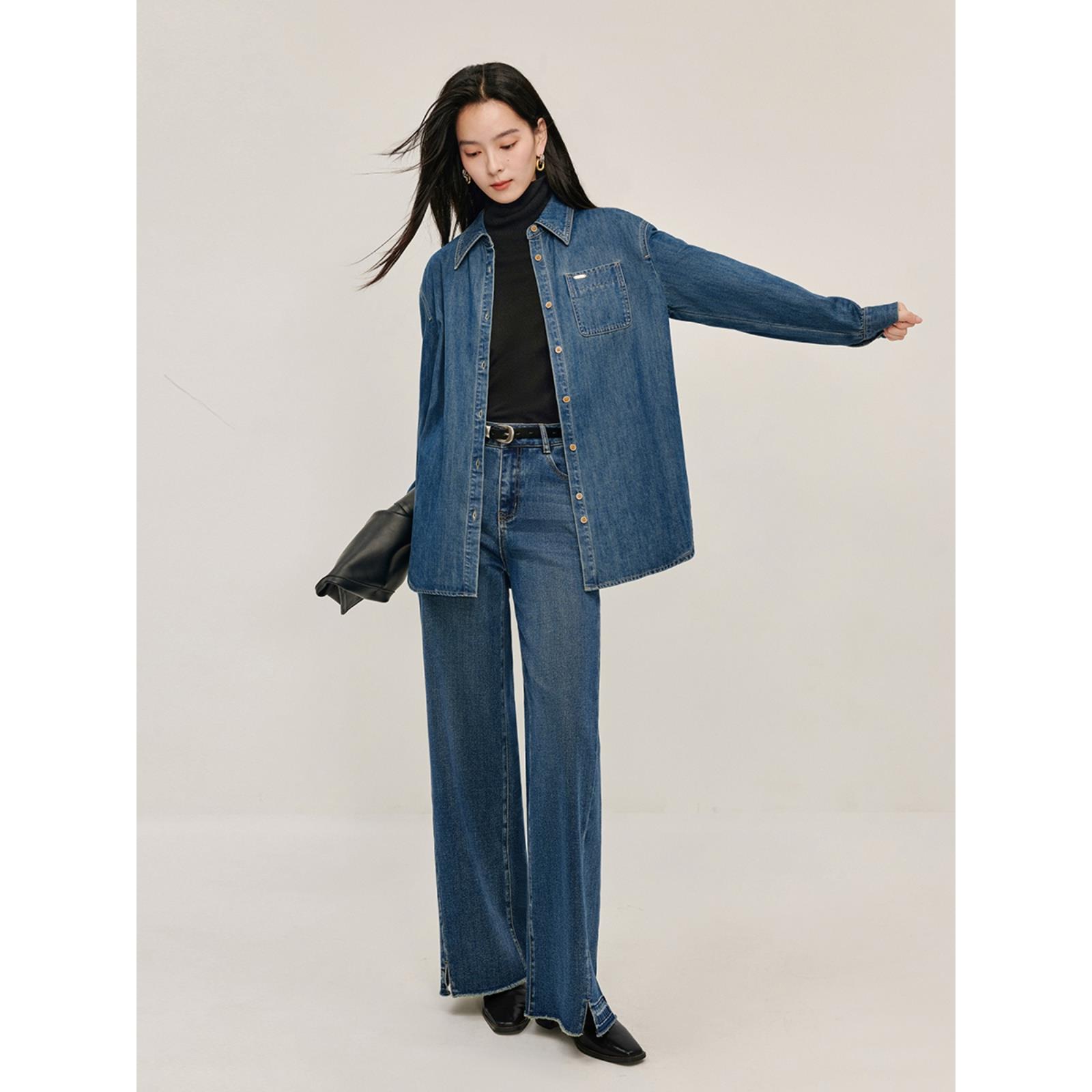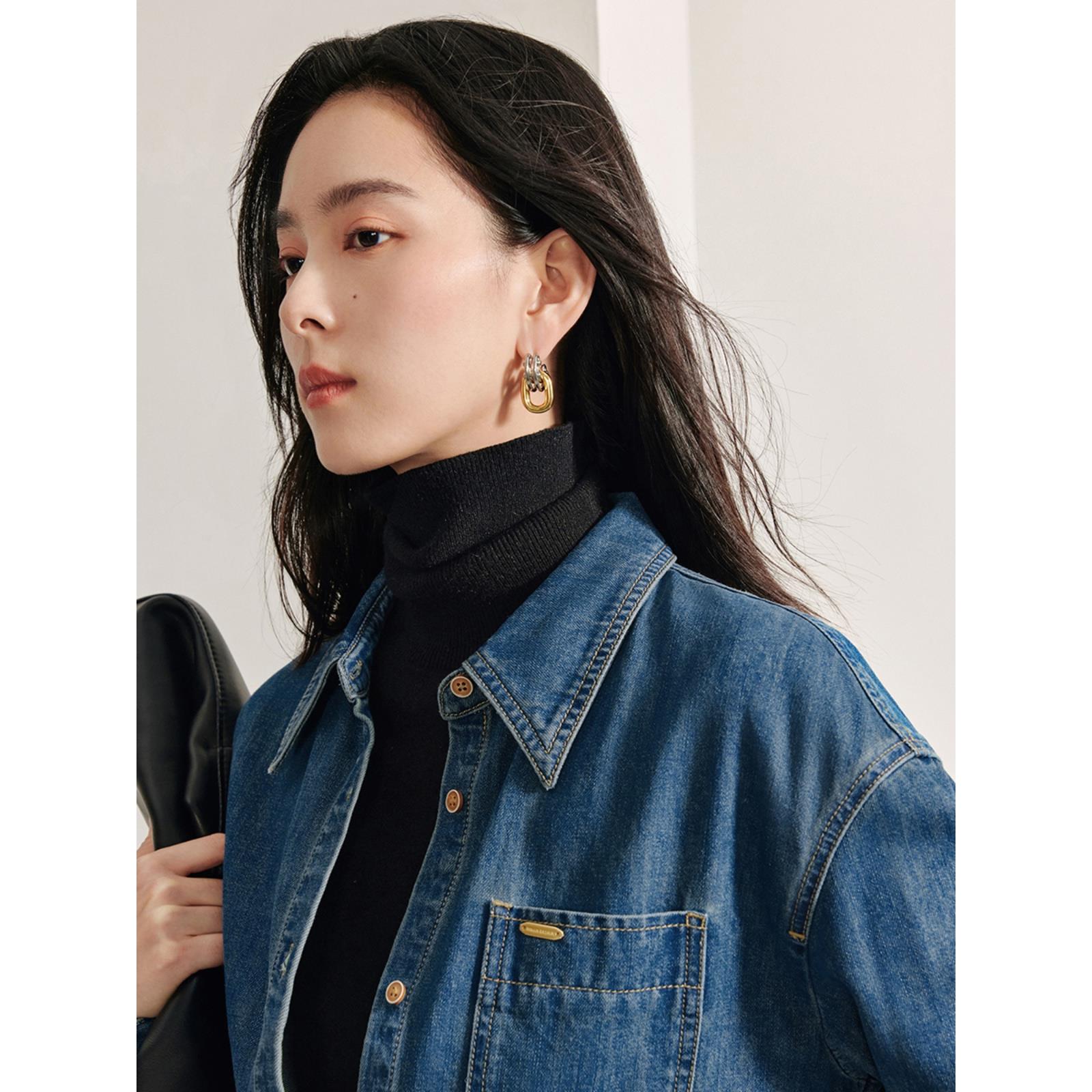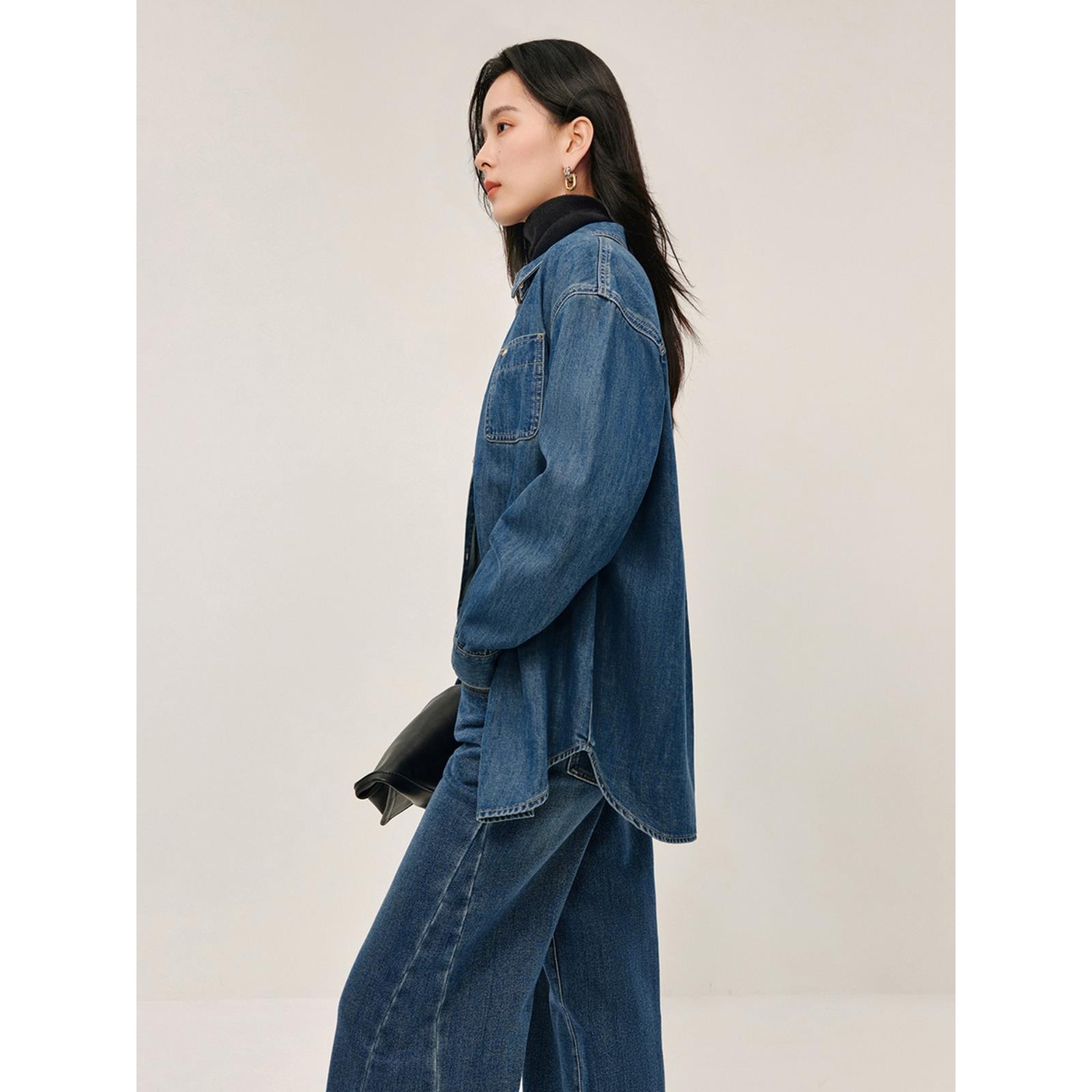 茵家美拉蓝纯棉牛仔衬衫女2025年秋季新款通勤内搭长袖衬衣上衣