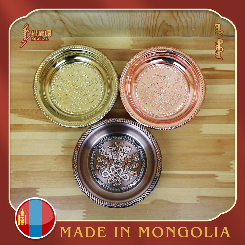 蒙古红铜盘子健康铜器手把肉盘水果盘家用塔穆嘎八角铜盘铜器手工