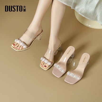 大东透明粗跟高跟鞋女夏季2026新款绝美百搭凉鞋高跟外穿女士拖鞋