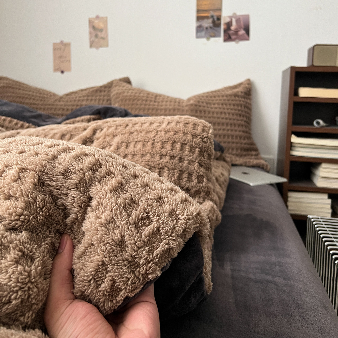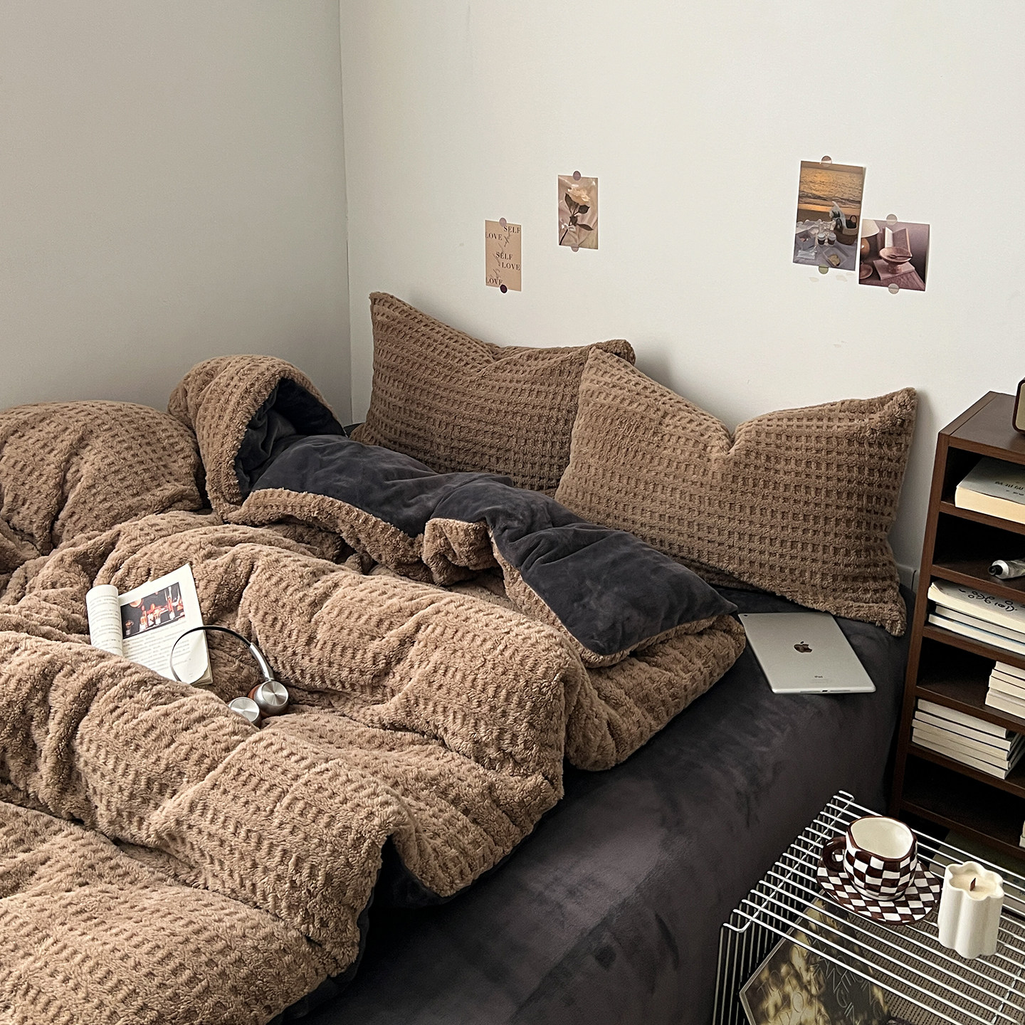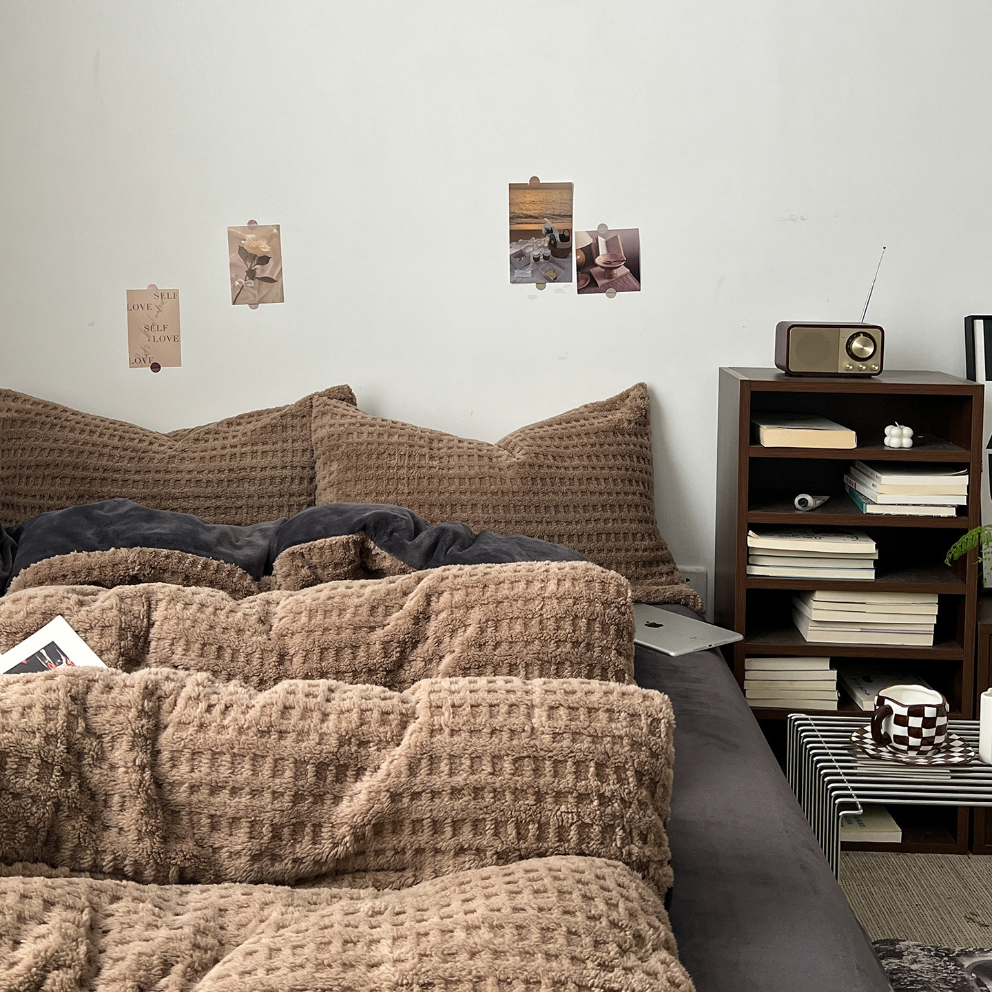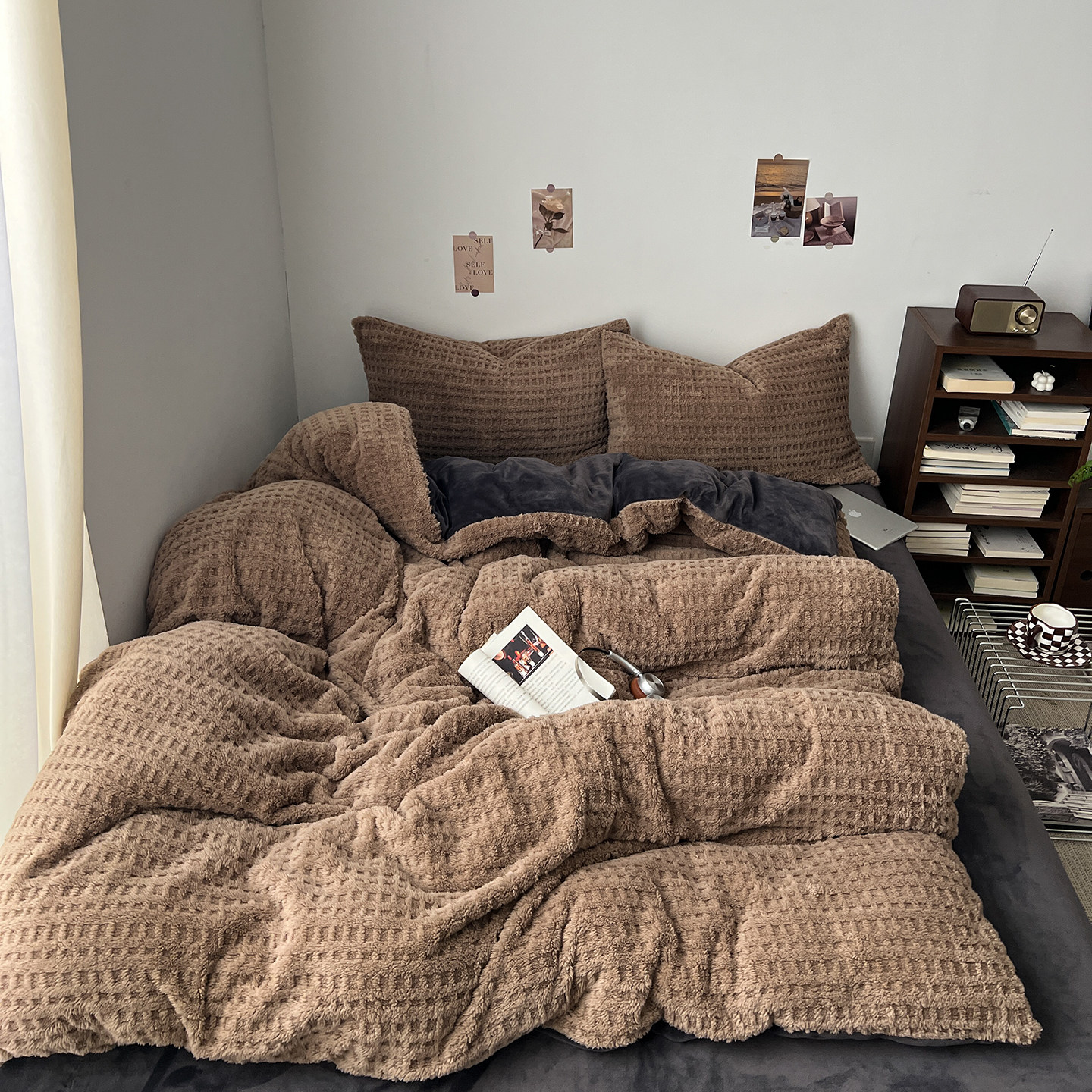 A类加厚牛奶绒四件套床上用品被罩床单珊瑚绒保暖被套三件套床笠4