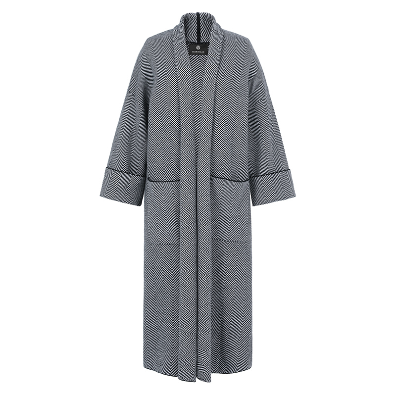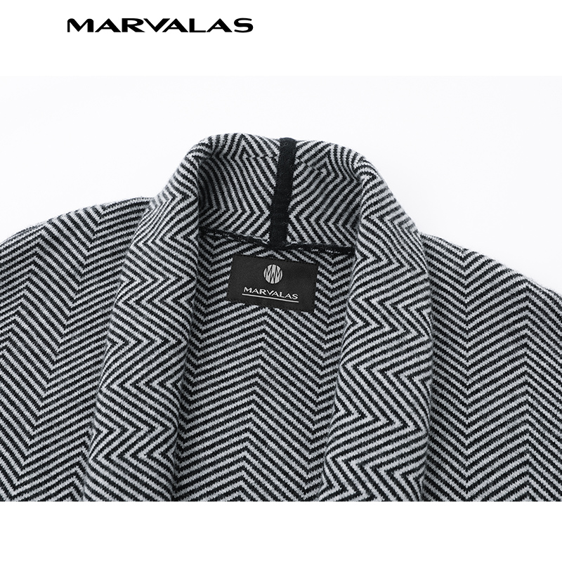 曼德诗开衫外套女针织秋秋黑白条中长款直筒显瘦外穿