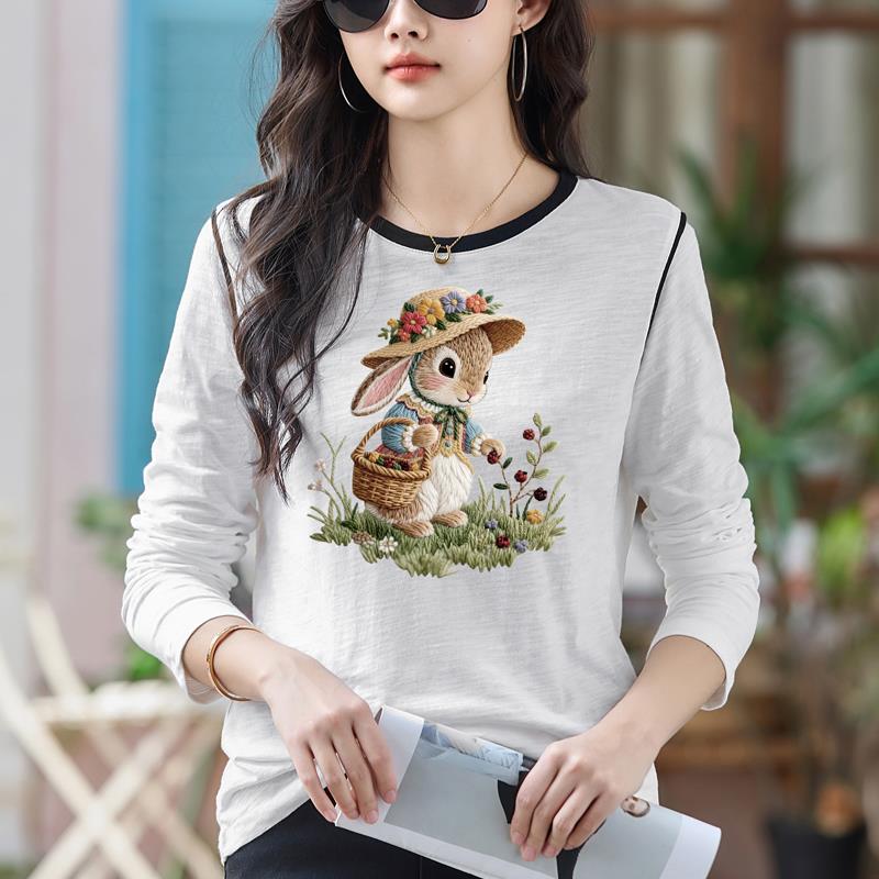 以纯早秋纯棉正肩长袖t恤女内搭秋季设计感修身打底衫小上衣
