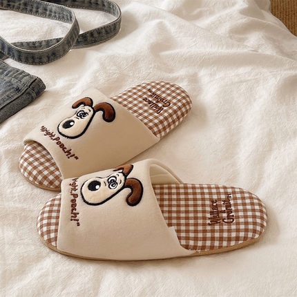 俏绘趣味小狗可爱棉麻透气拖鞋
