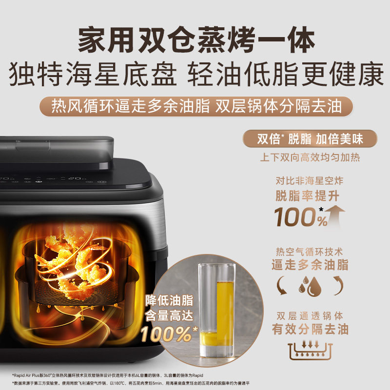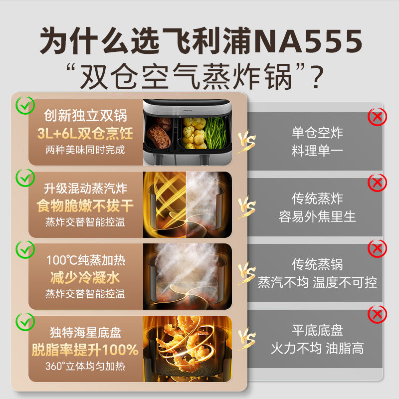 飞利浦空气炸锅烹饪机新款NA555双仓蒸炸电炸锅