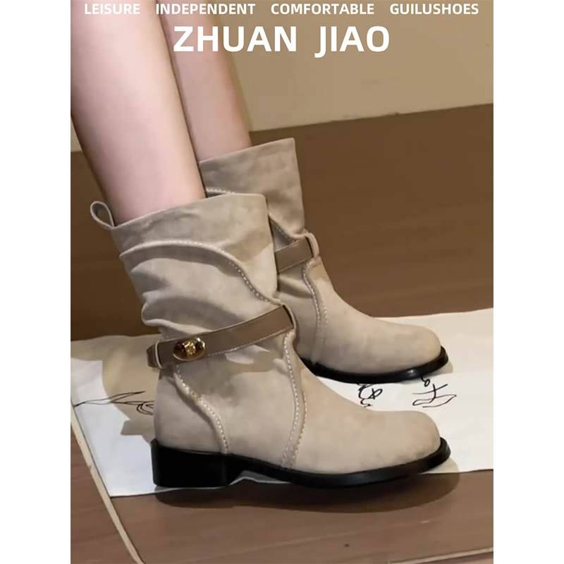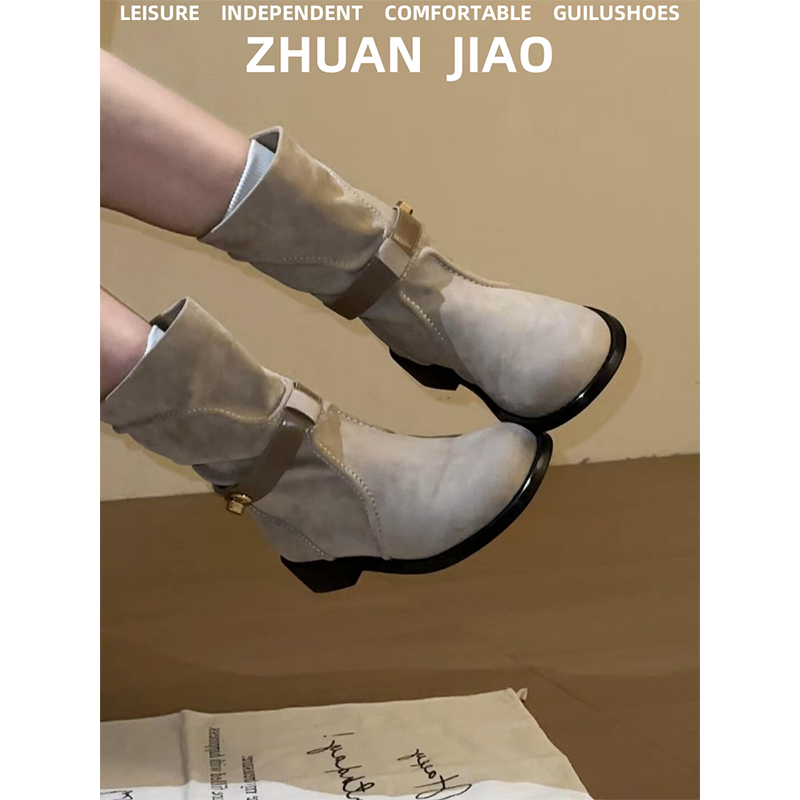 复古短靴女款2025新款秋季西部牛仔靴子绒面马丁靴中筒骑士瘦瘦靴