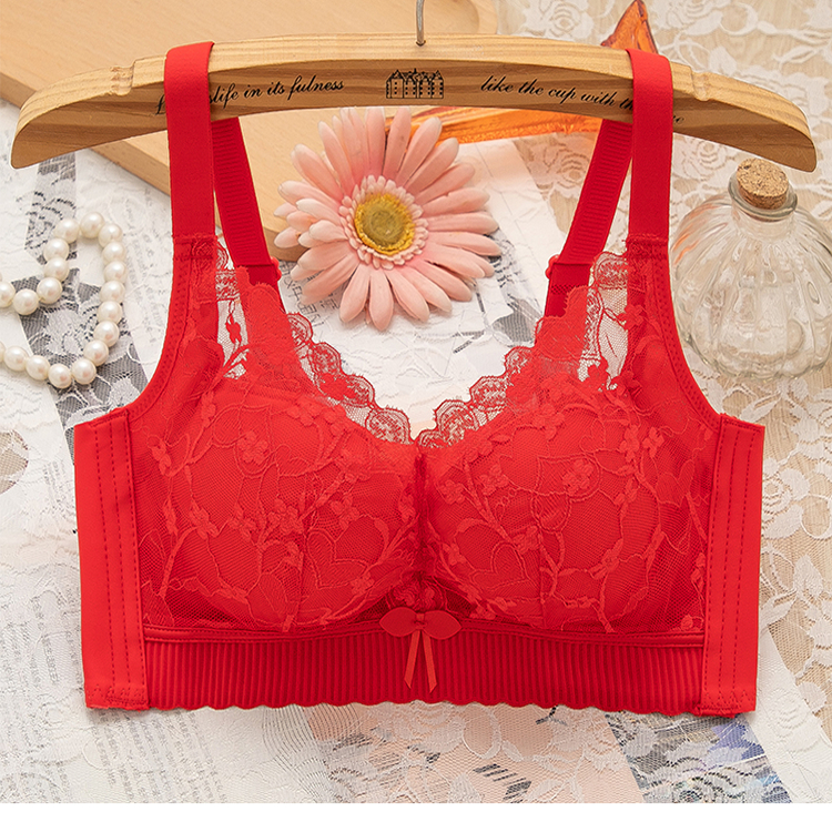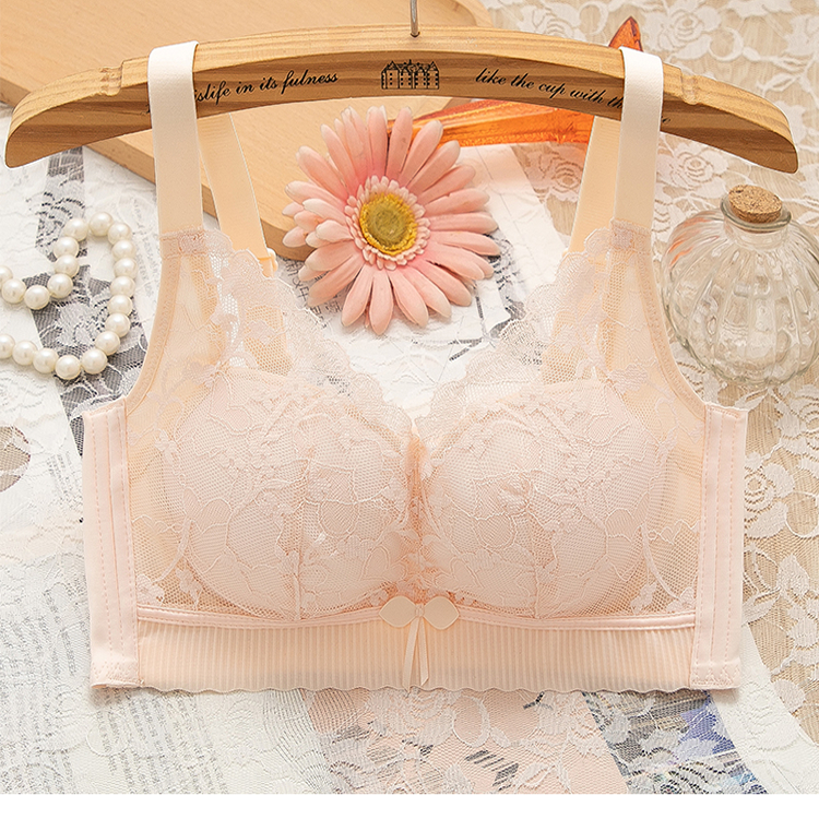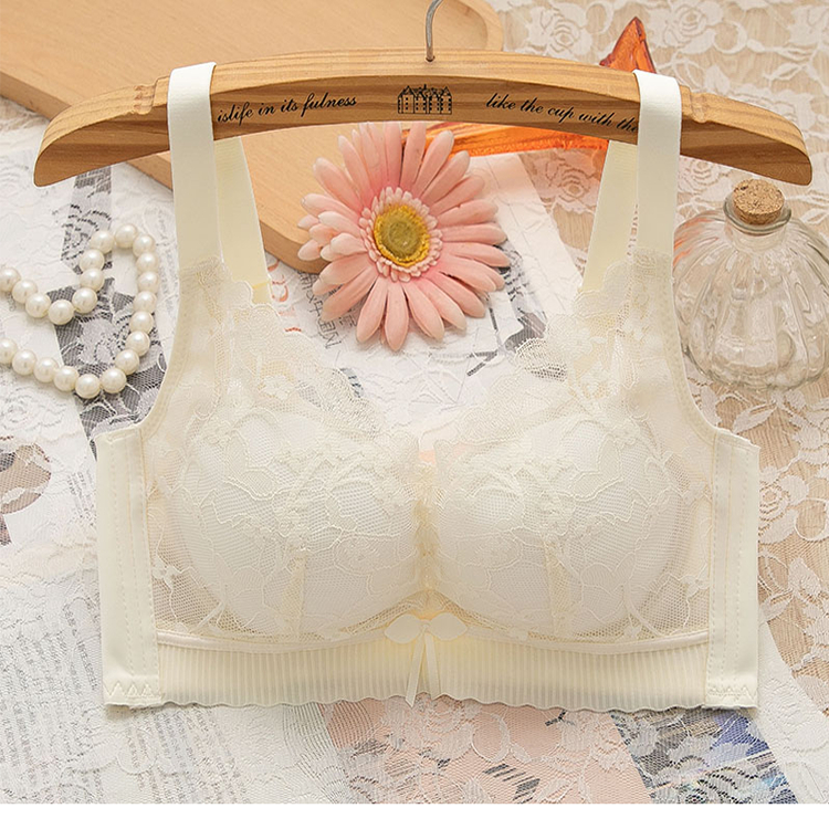 都市甜美蕾丝无钢圈文胸小胸聚拢厚款薄款无磁内衣女士调整型文胸