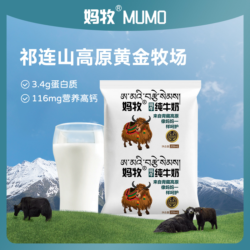 妈牧牦牛纯牛奶孕妇青海全脂早餐成人耗牛奶200ml*16袋送礼