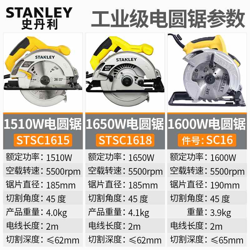 史丹利电圆锯7寸木工电锯电动木工锯子圆盘锯木材切割机STSC1518