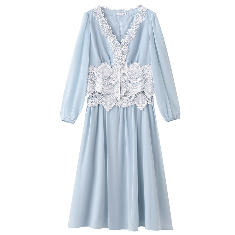 韩系通勤拼接蕾丝衬衫半身裙套装