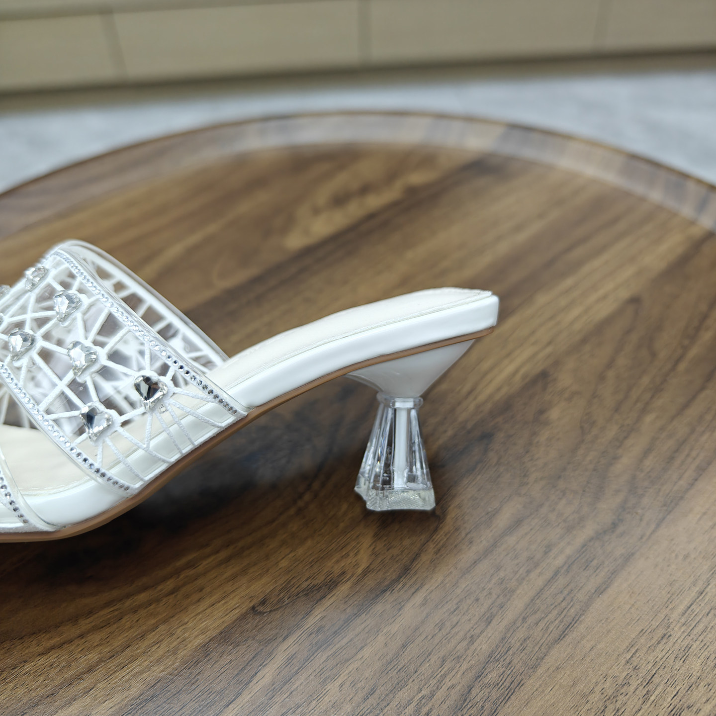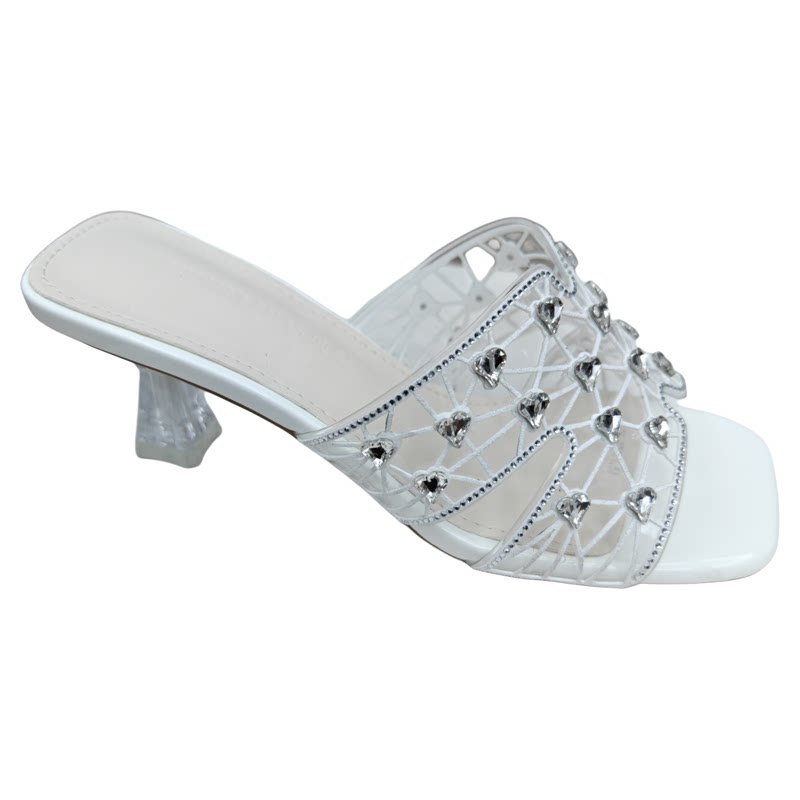 透明水钻一字拖凉拖鞋细跟高跟鞋
