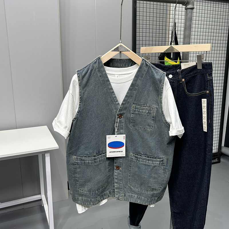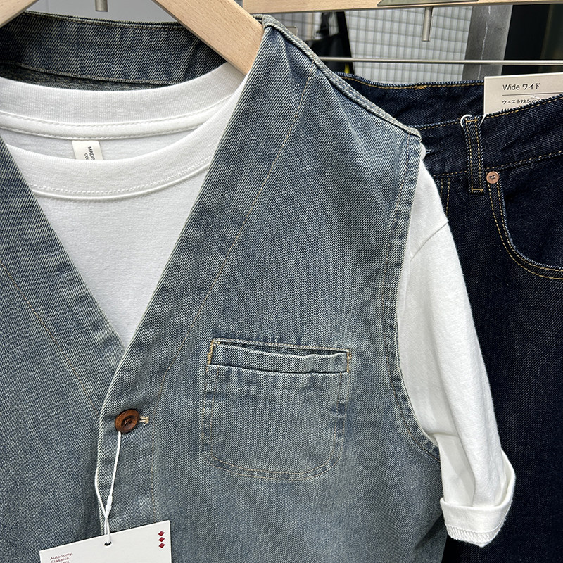 古着民族风内里 潮牌全棉水洗男女叠穿工装牛仔马甲休闲无袖背心