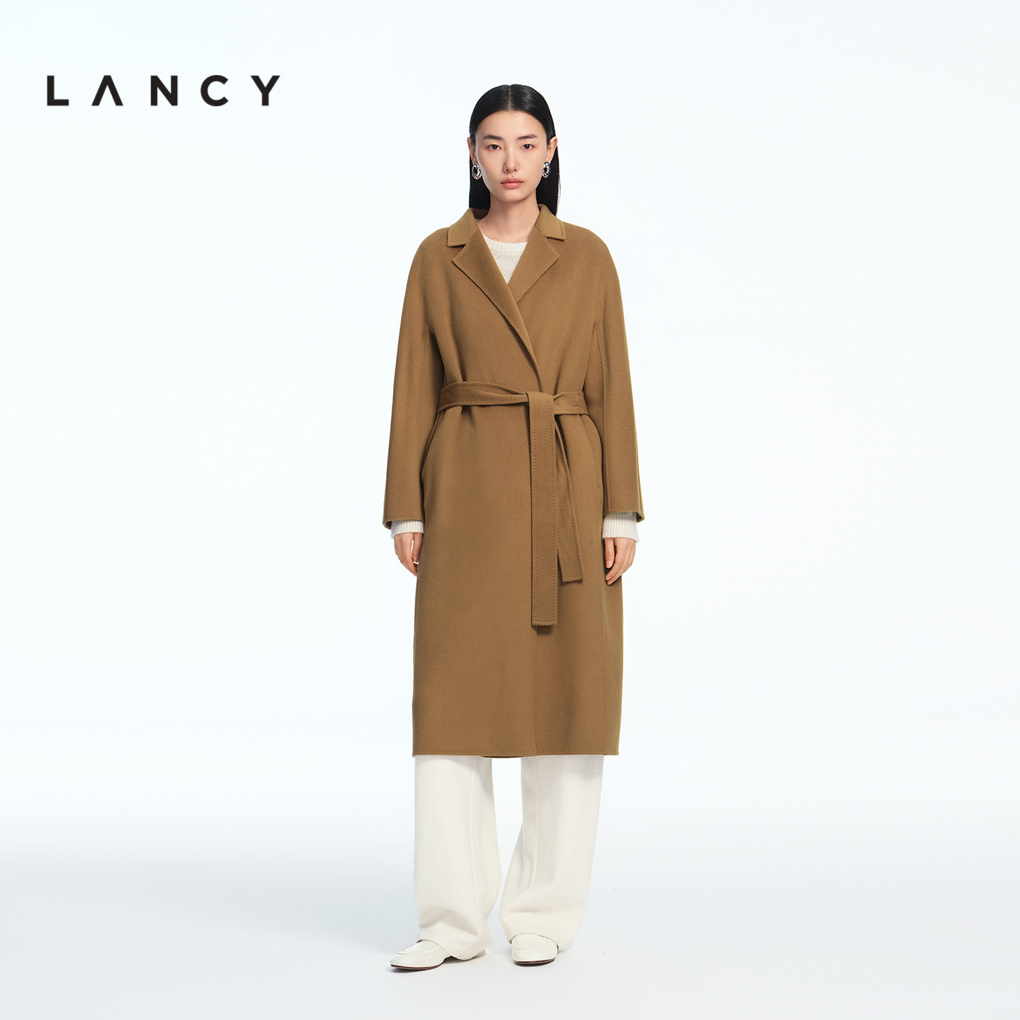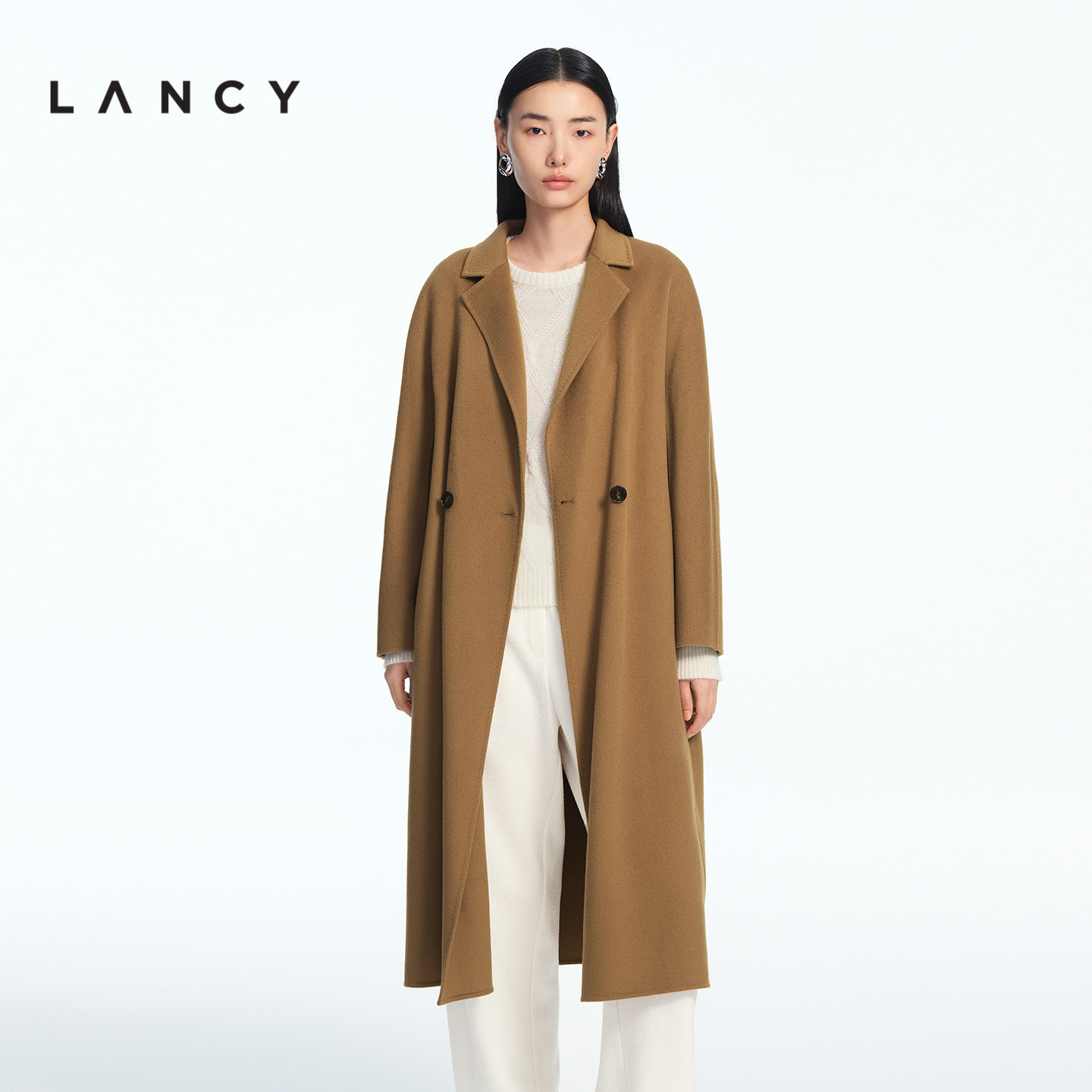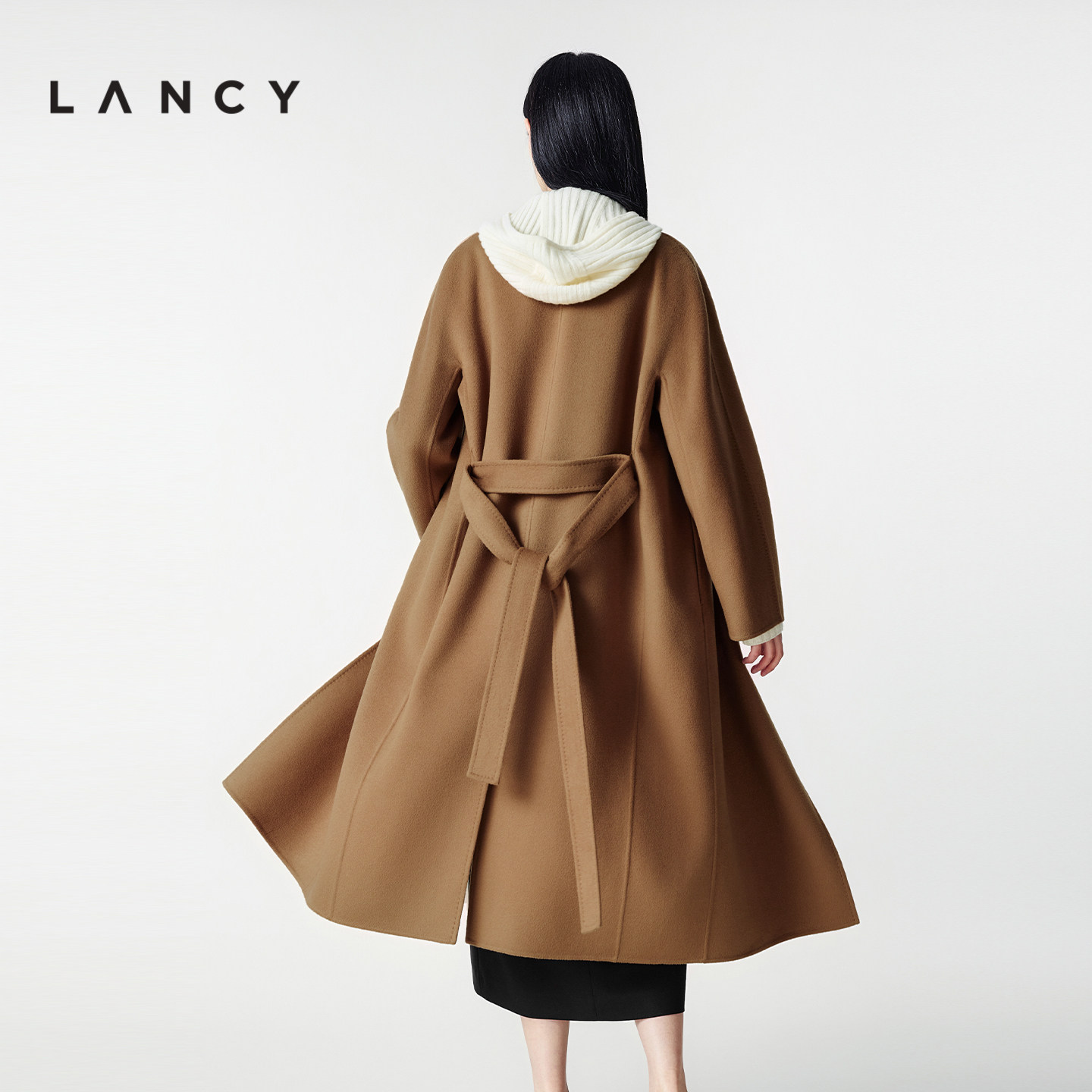 LANCY/朗姿2025冬新款羊毛羊绒桑蚕丝双面呢西装领毛呢大衣外套女