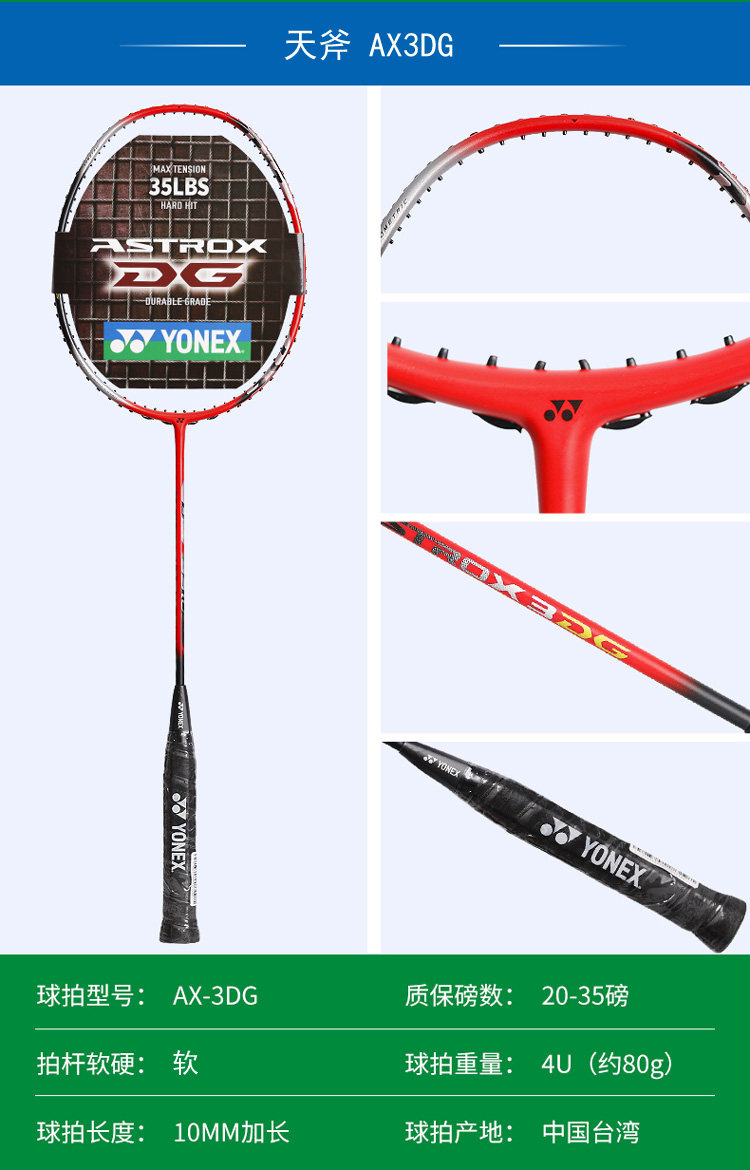 正品YONEX 天斧AX3DG羽毛球拍 YY尤尼克斯高磅数碳素台湾产初中级