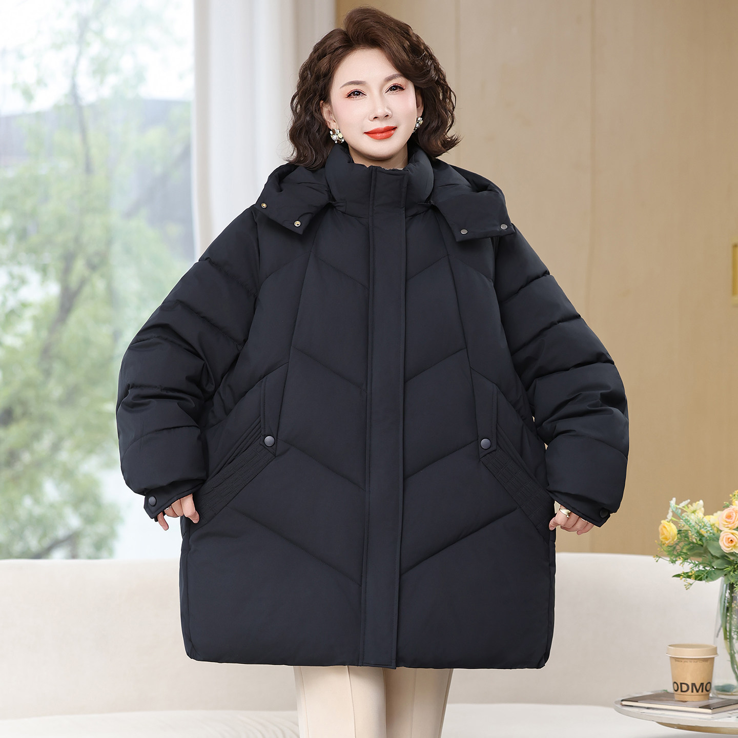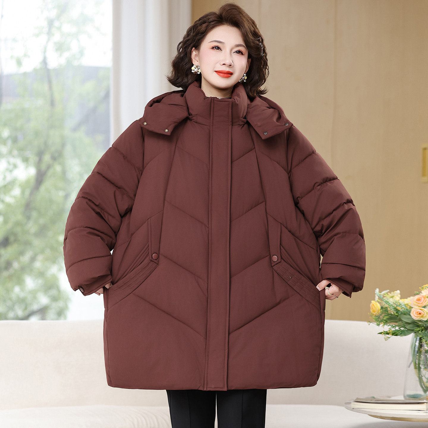 大码中老年女装羽绒棉服200斤胖mm妈妈冬装加厚保暖外套