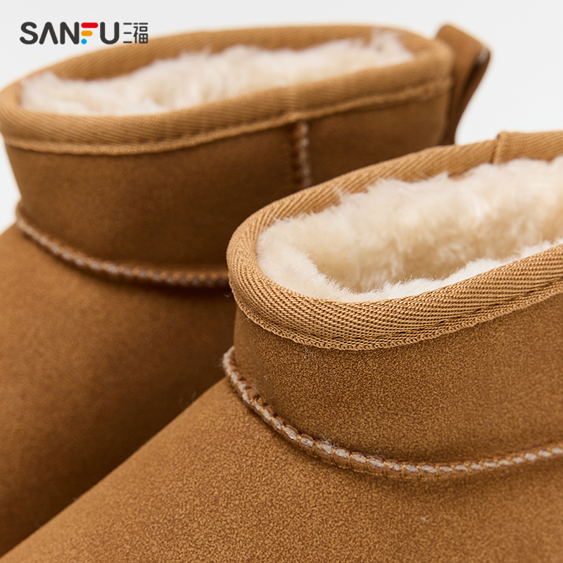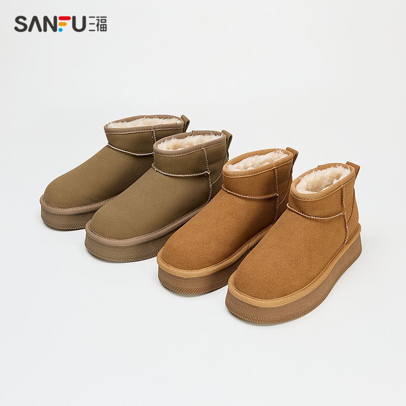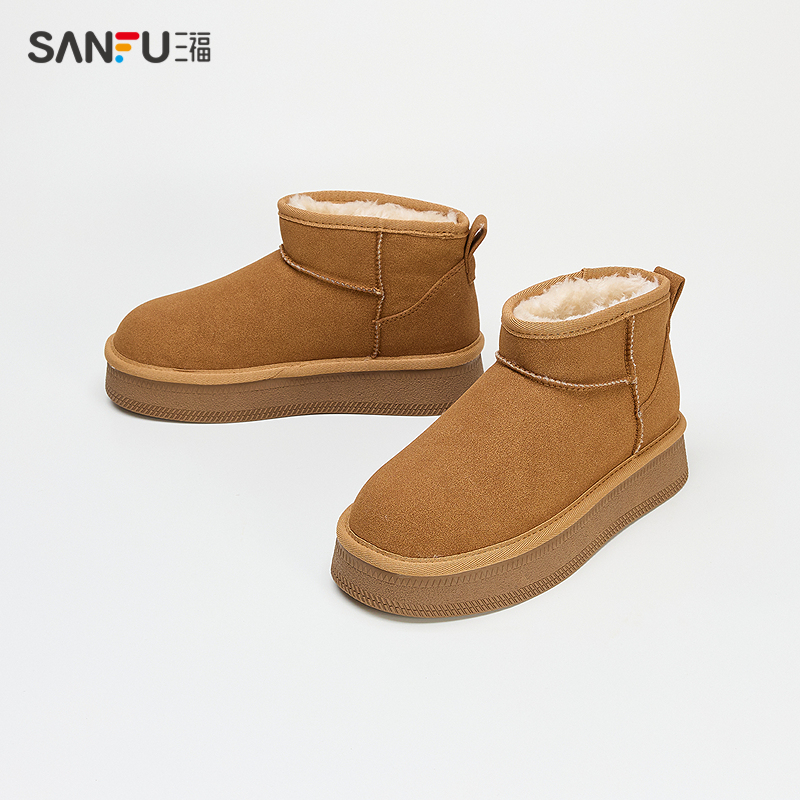 三福雪地靴冬季经典简约纯色毛绒增高厚底中筒休闲女鞋834374