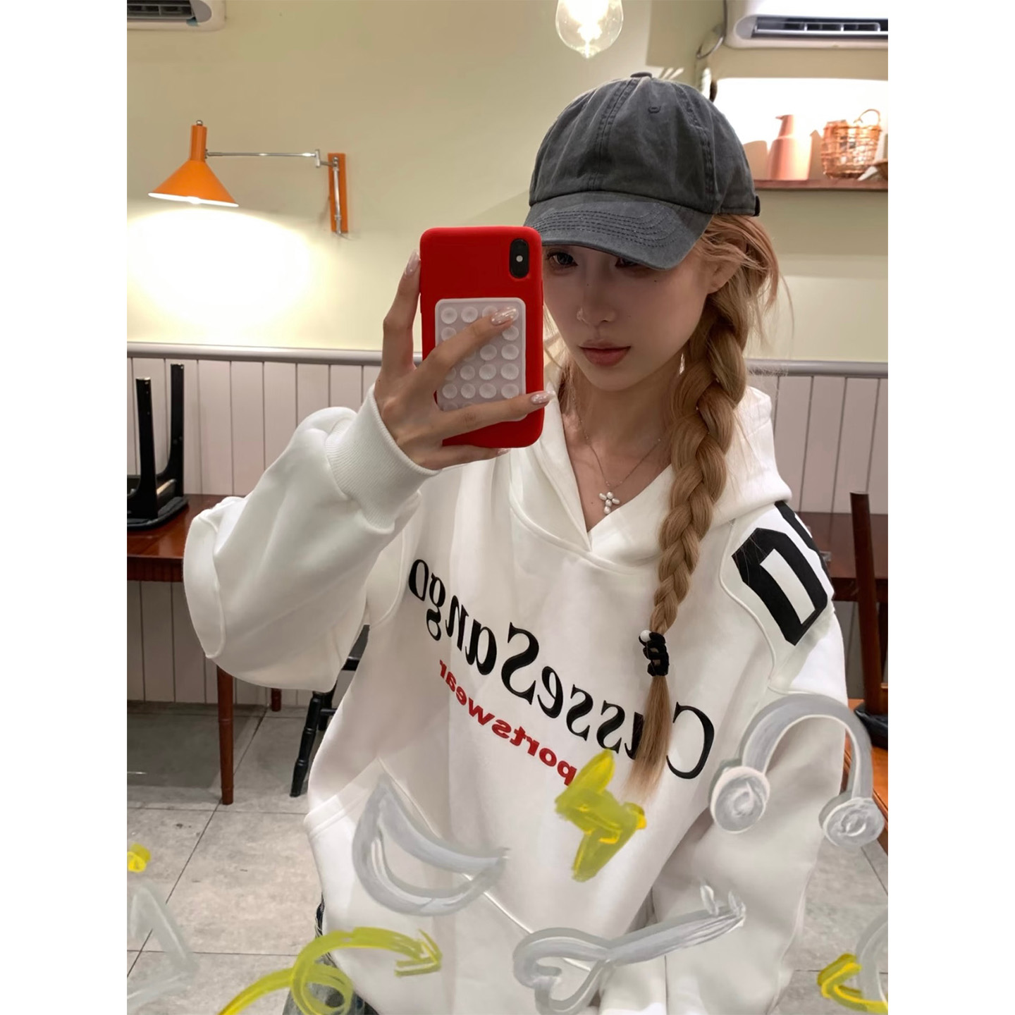 美式街头2025秋冬新款连帽卫衣女加绒加厚宽松慵懒风oversize外套