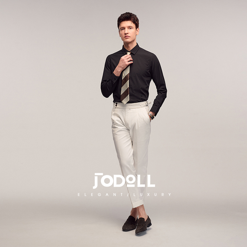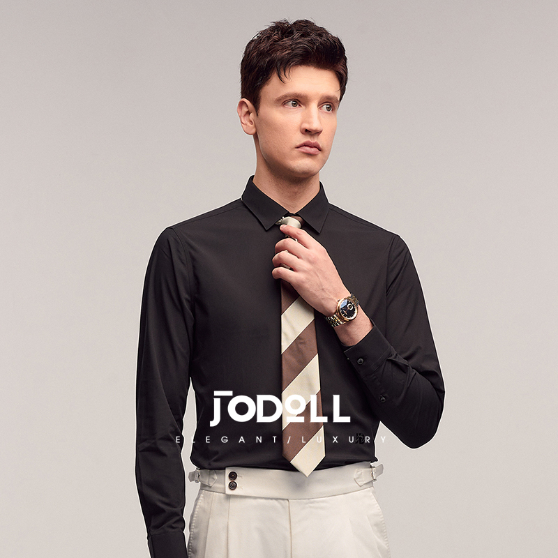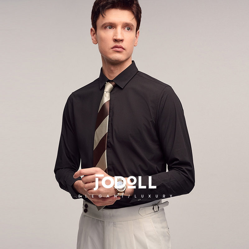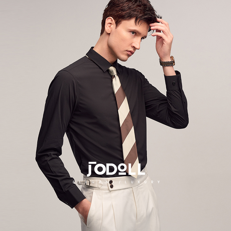 JODOLL乔顿男弹力舒适修身衬衣春季商务休闲经典黑色百搭长袖衬衫