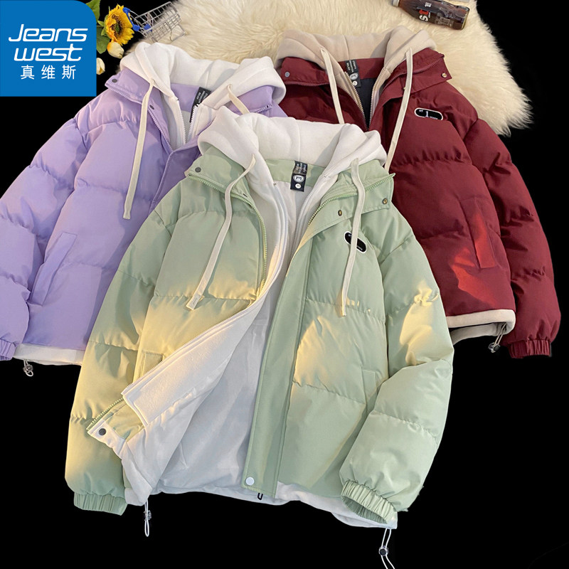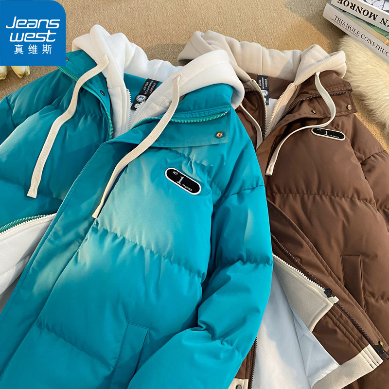 【真维斯】假两件连帽棉服男女秋冬加厚保暖宽松棉袄棉衣情侣外套
