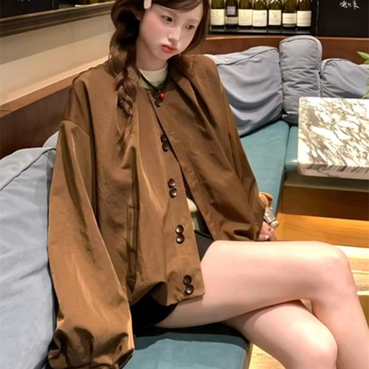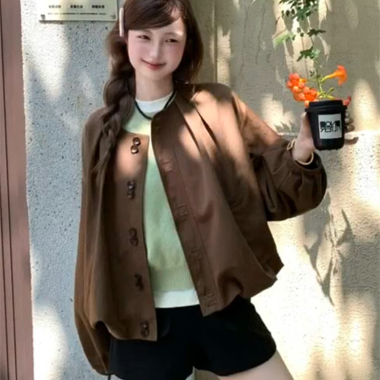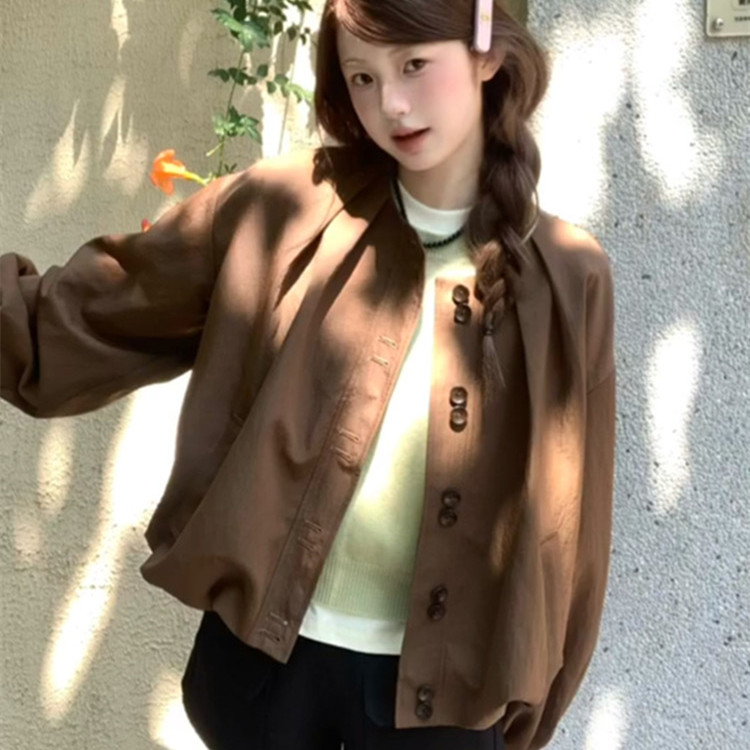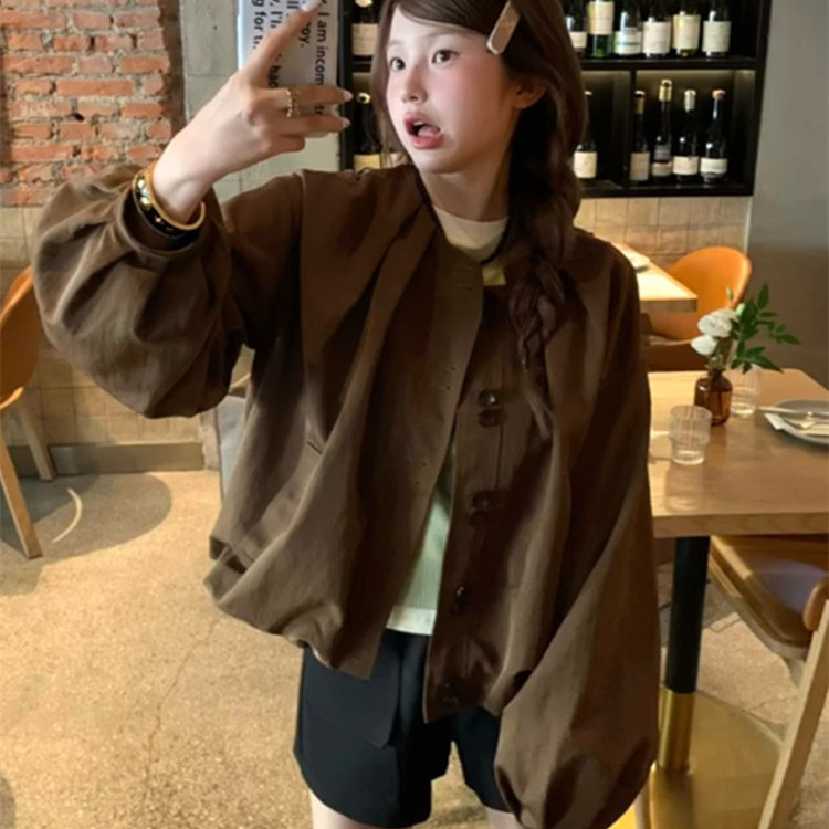 韩系复古高级感短款花苞外套女秋季新款设计感宽松机车服夹克上衣