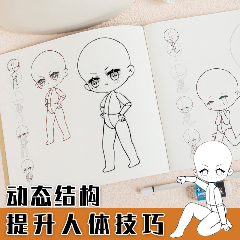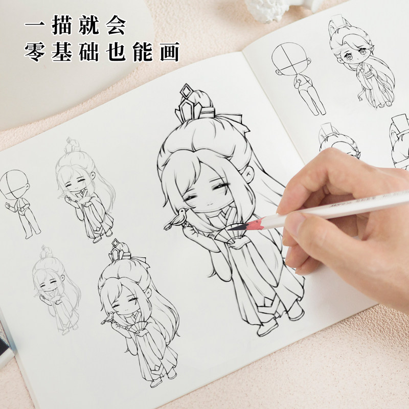 Q版人体结构古风机甲少女练习册人物漫画教程书游戏动漫线稿临摹卡通手绘画画入门自学零基础速写图片描摹