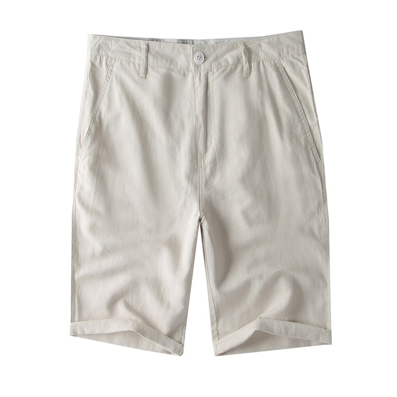 亚麻短裤男士休闲麻料中裤夏季透气白色小清新薄款棉麻5分男裤子