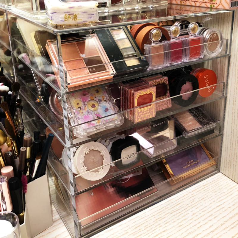 小红书同款眼影粉饼腮红化妆品收纳盒口红桌面防尘抽屉式置物架