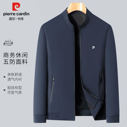 皮尔卡丹正品秋季薄款男士时尚百搭外套中年商务休闲立领夹克男装