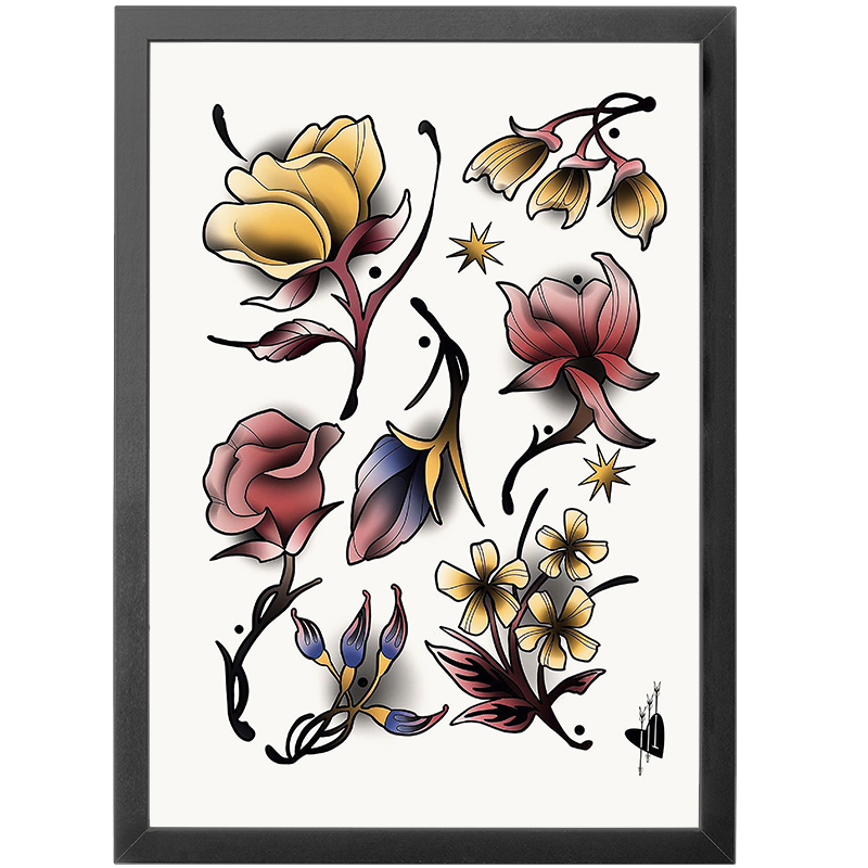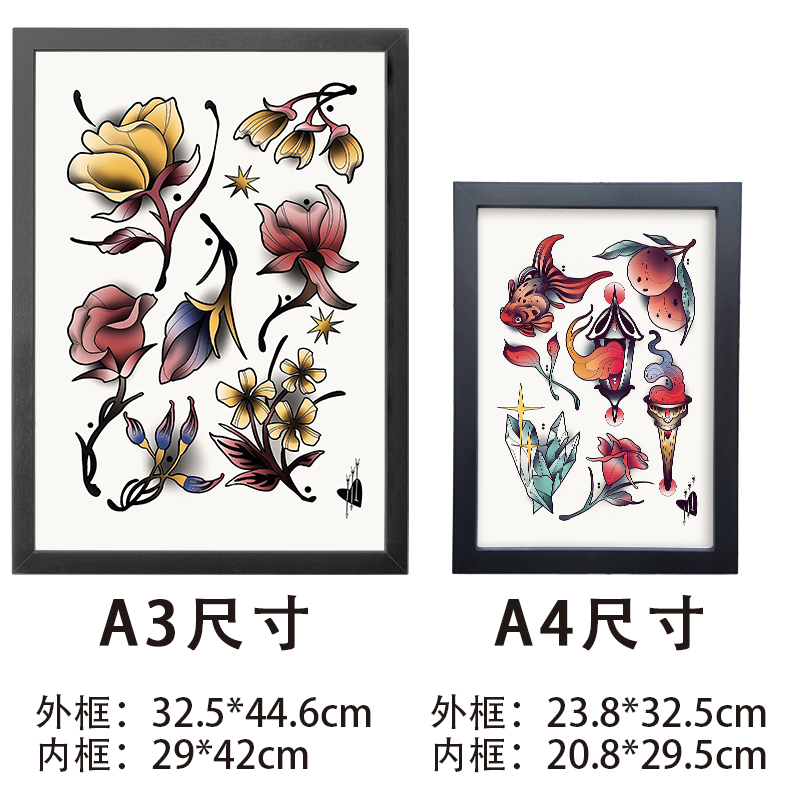 A3A4纹身海报画框墙壁装饰画newschool相框刺青手稿客厅背景墙画
