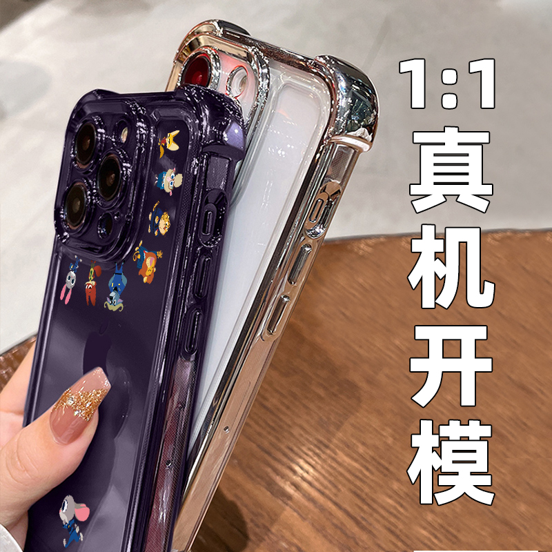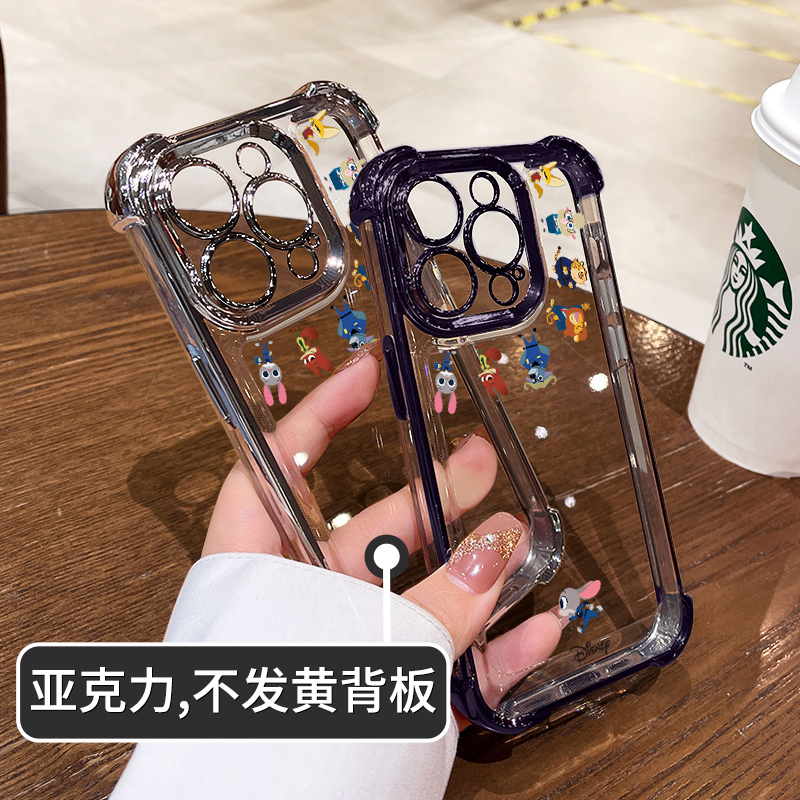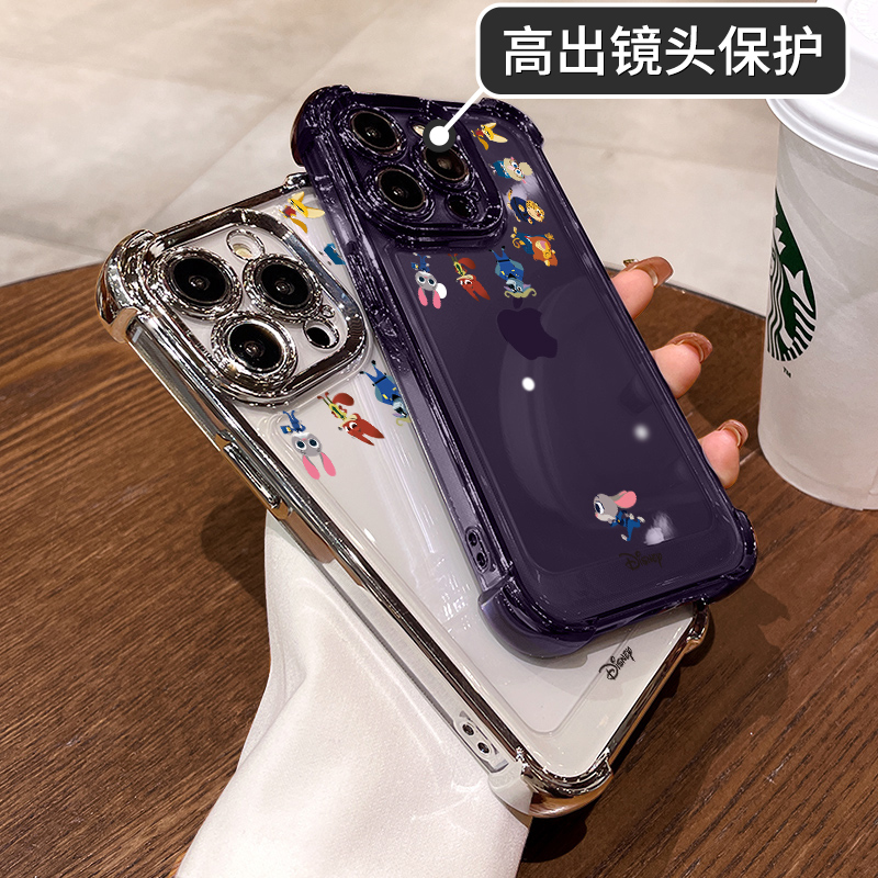 卡通动物城适用苹果17promax手机壳iphone16pro透明电镀15plus四角气囊防摔14女高级感13软xs个性创意xr潮牌