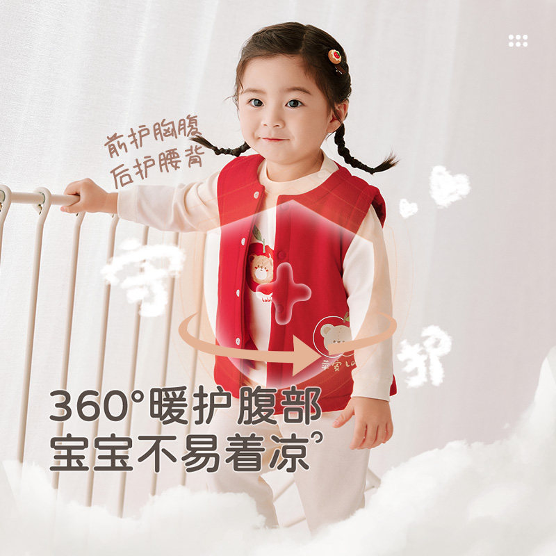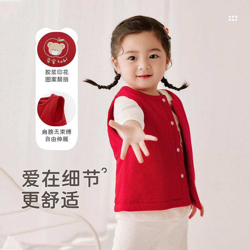 拉比儿童全开马甲男女宝宝2025秋冬季新款喜庆红色80g棉保暖马甲