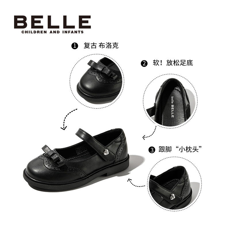 百丽童鞋女童黑皮鞋2025春季新款儿童演出鞋小女孩学生礼仪小皮鞋