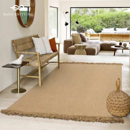 手编天然黄麻地毯客厅流苏款高级风奢华茶几沙发垫边穗子地垫定制