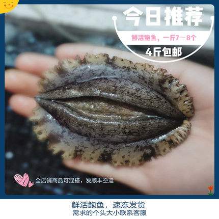 【现场直播】鲜活鲍鱼水产贝类10个一斤 买满4斤包邮顺丰空运