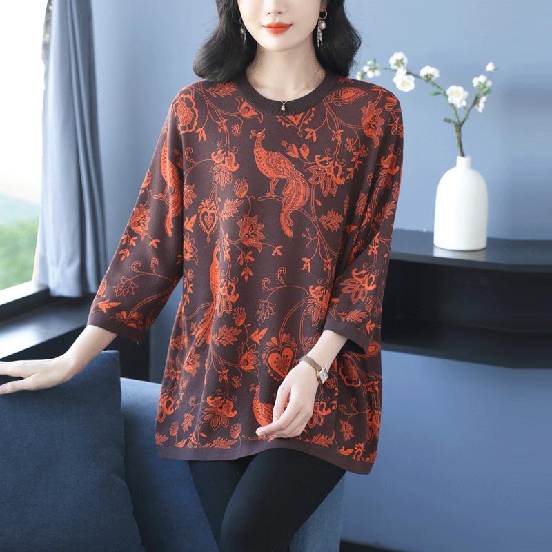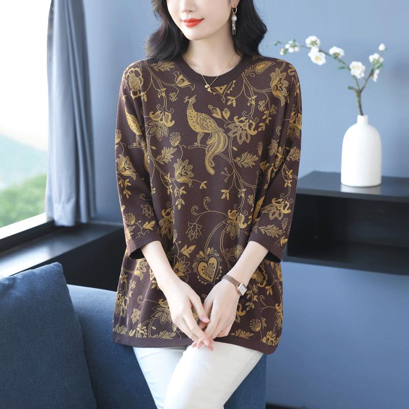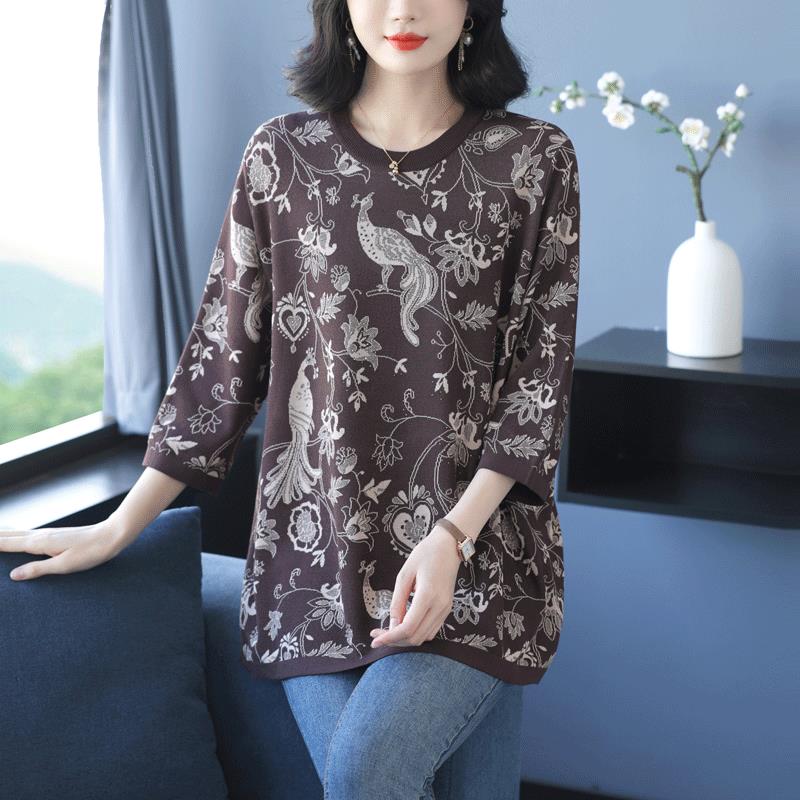 胖妈妈加大码桑蚕丝七分袖t恤女早春新款宽松遮肉针织冰丝上衣